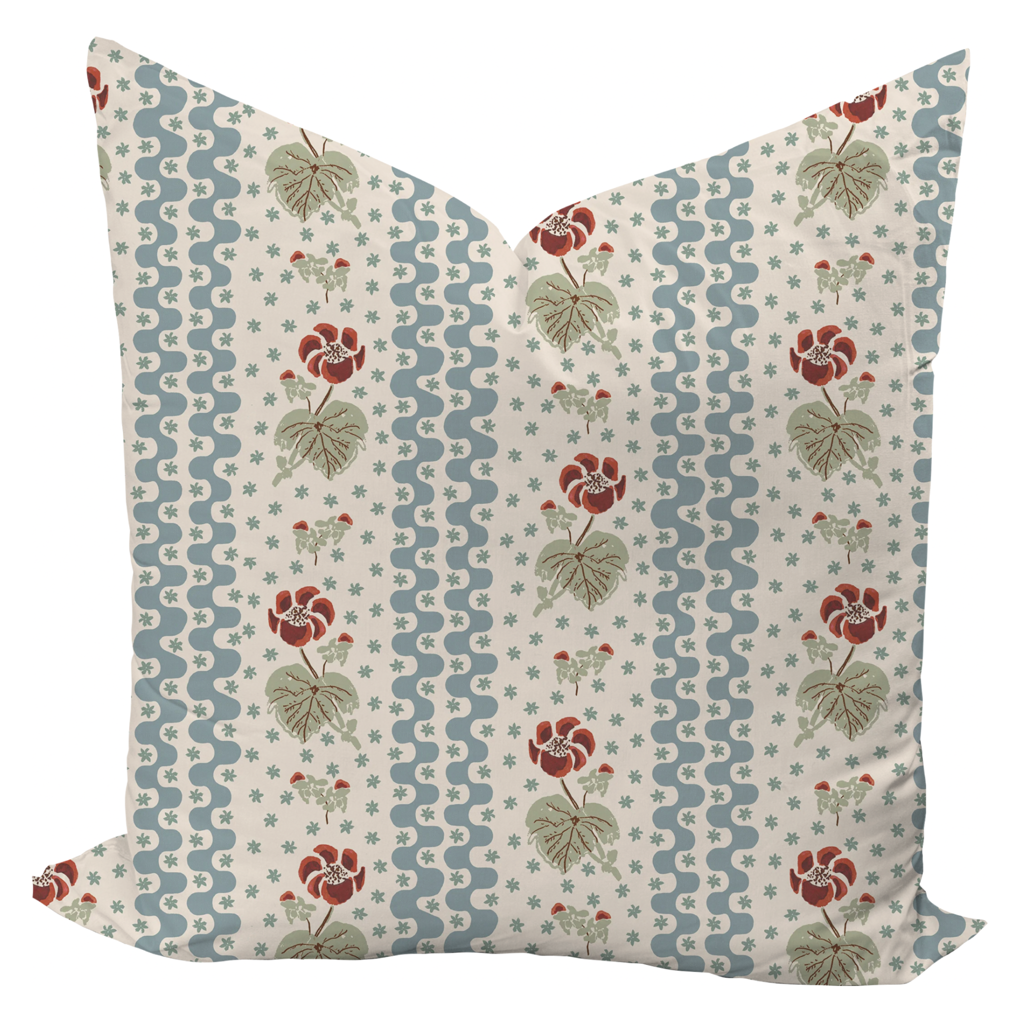 One decorative pillow cover featuring a floral stripe design on home decor weight fabric by artist Lulie Wallace.