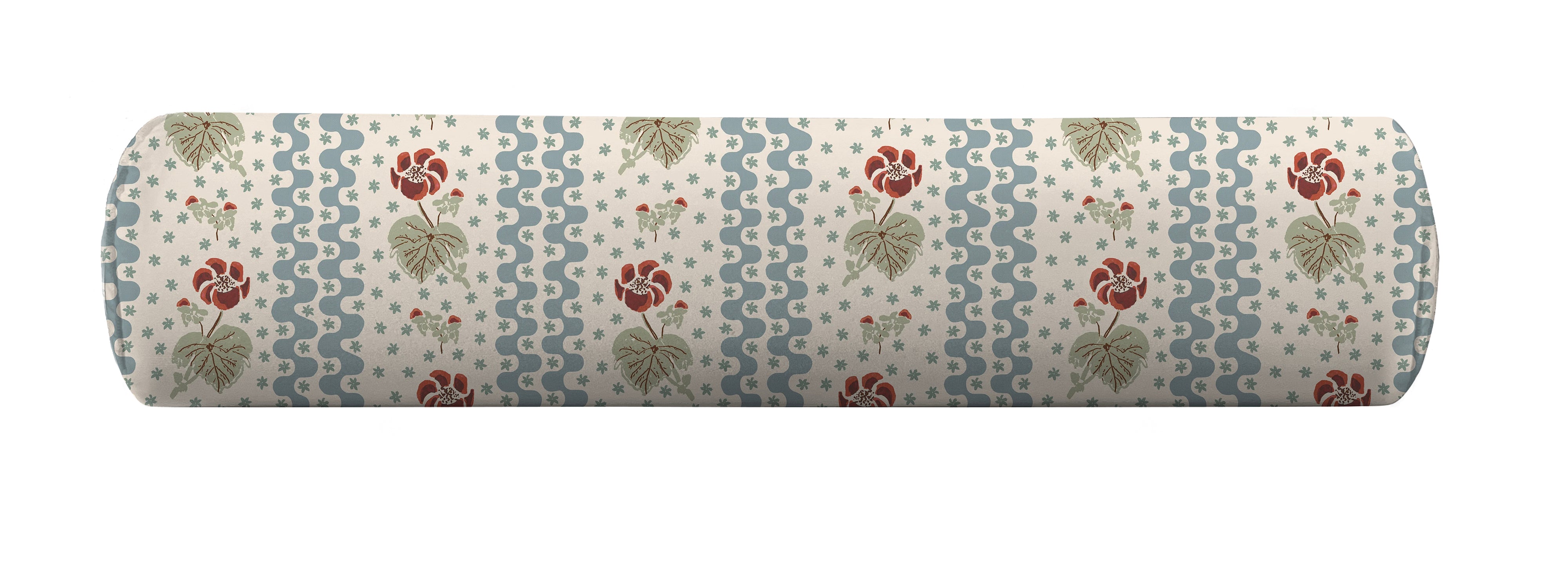 One decorative pillow cover featuring a striped, floral design on home decor weight fabric by artist Lulie Wallace.