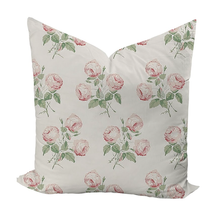 One decorative pillow cover featuring a floral print design on chintz like home decor weight fabric.