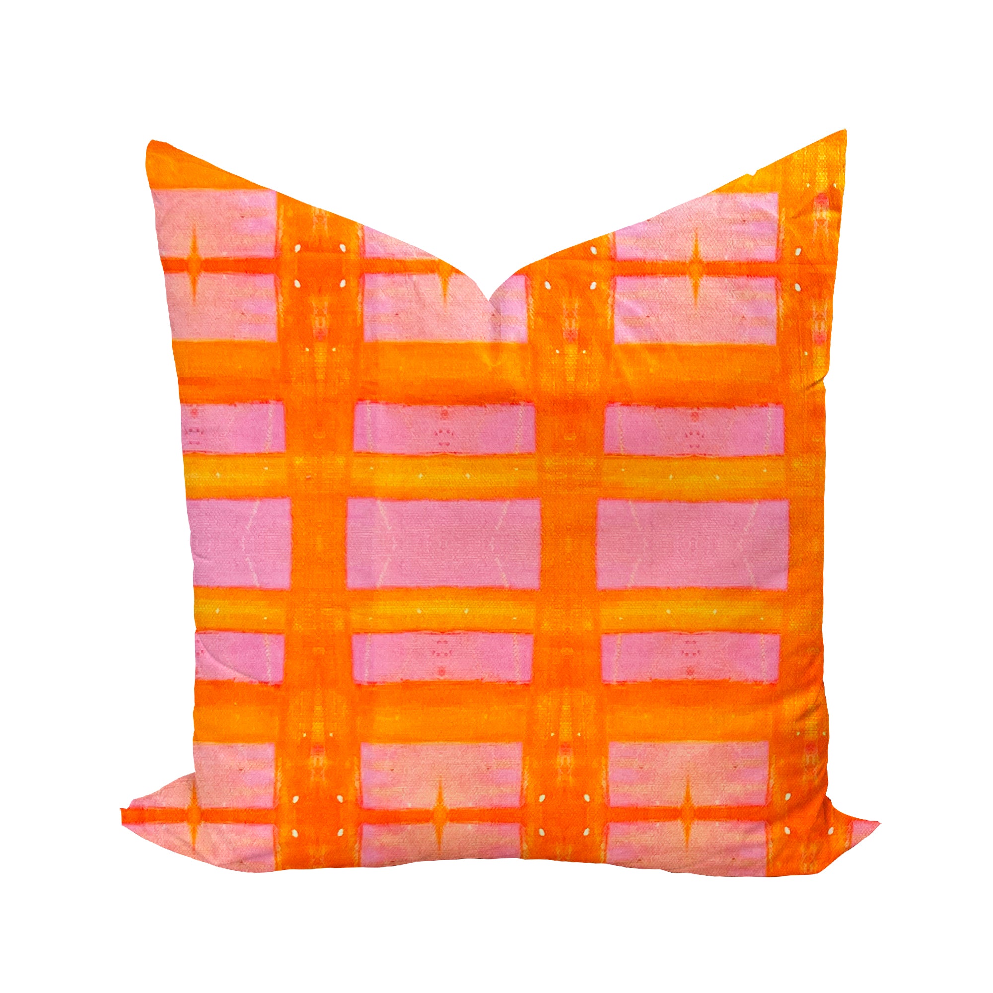 One decorative pillow cover featuring an abstract design on home decor weight fabric by artist Cathy Lancaster.