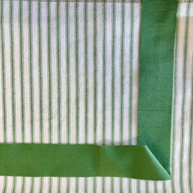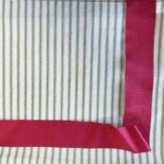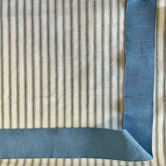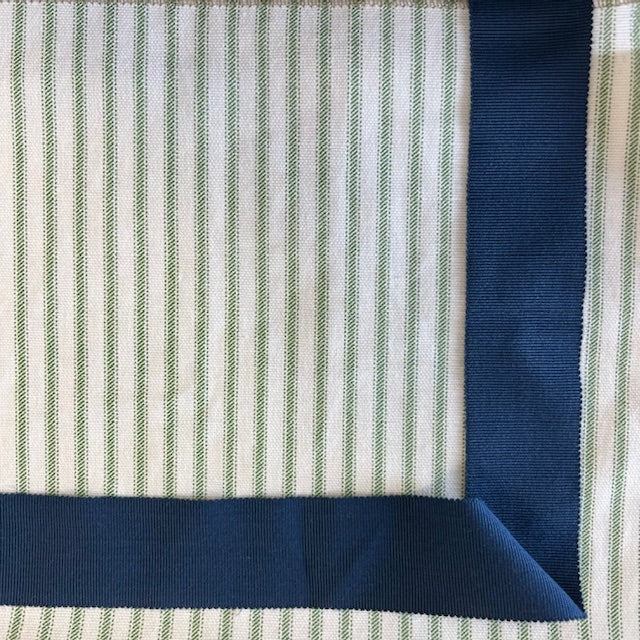 You just can't beat a classic ticking stripe! It's a great alternative to a solid fabric and we love it accented with a tape for a polished look.