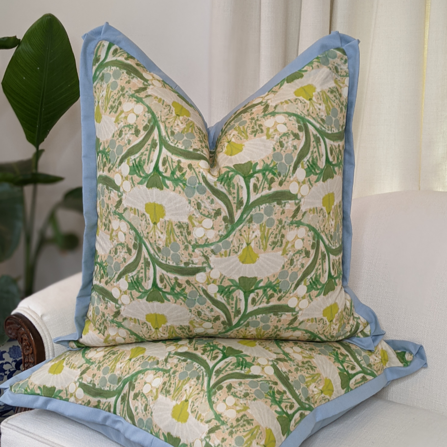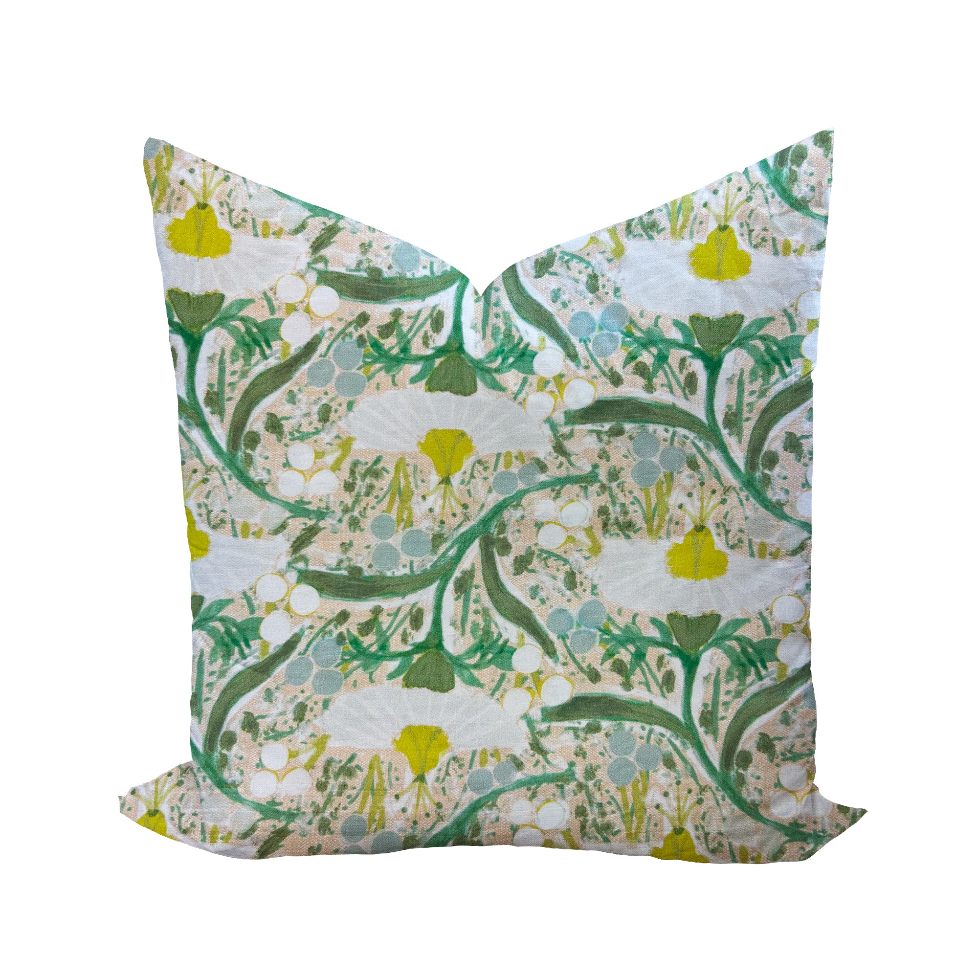 One decorative pillow cover featuring a design on home decor weight fabric by artist Lulie Wallace.