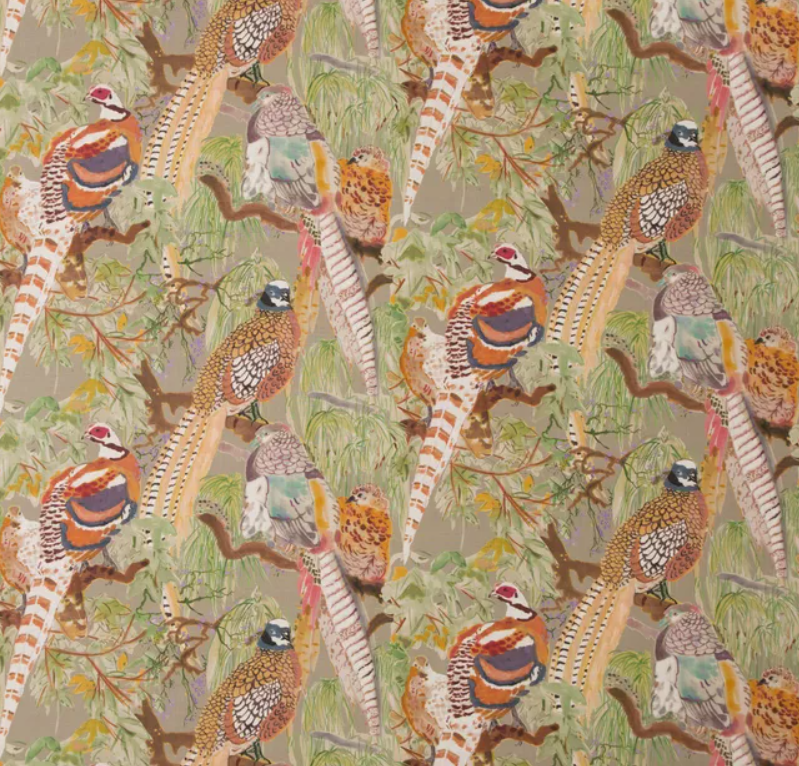 One decorative pillow cover featuring an pheasant print design on home decor weight fabric by Lee Jofa.