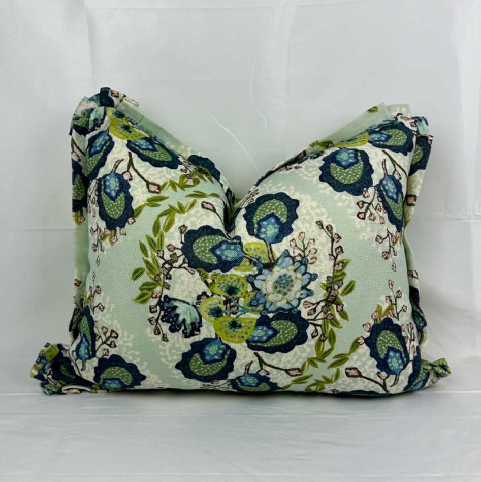 One decorative pillow cover featuring a floral like design on home decor weight fabric by Ferrick Mason.