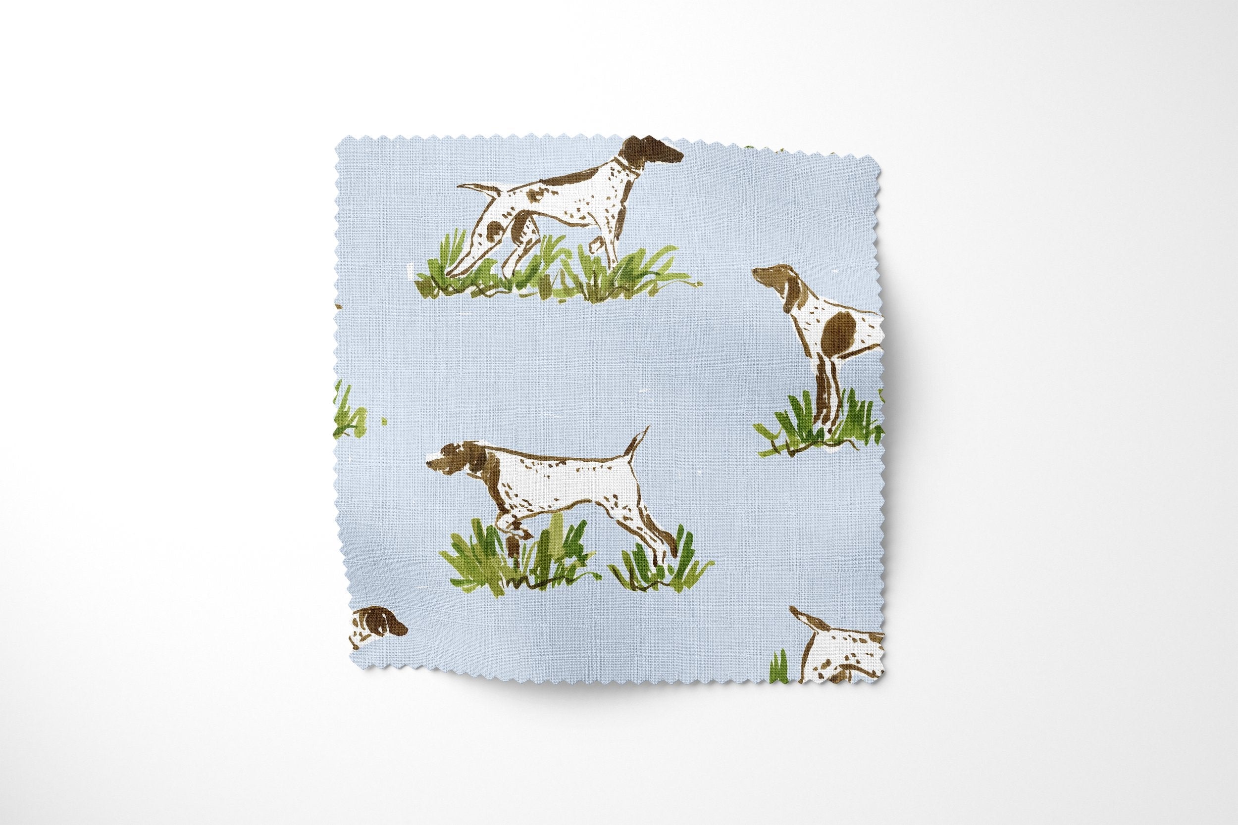 One decorative pillow cover featuring a spaniel dog scene on home decor weight fabric by artist Camilla Moss.
