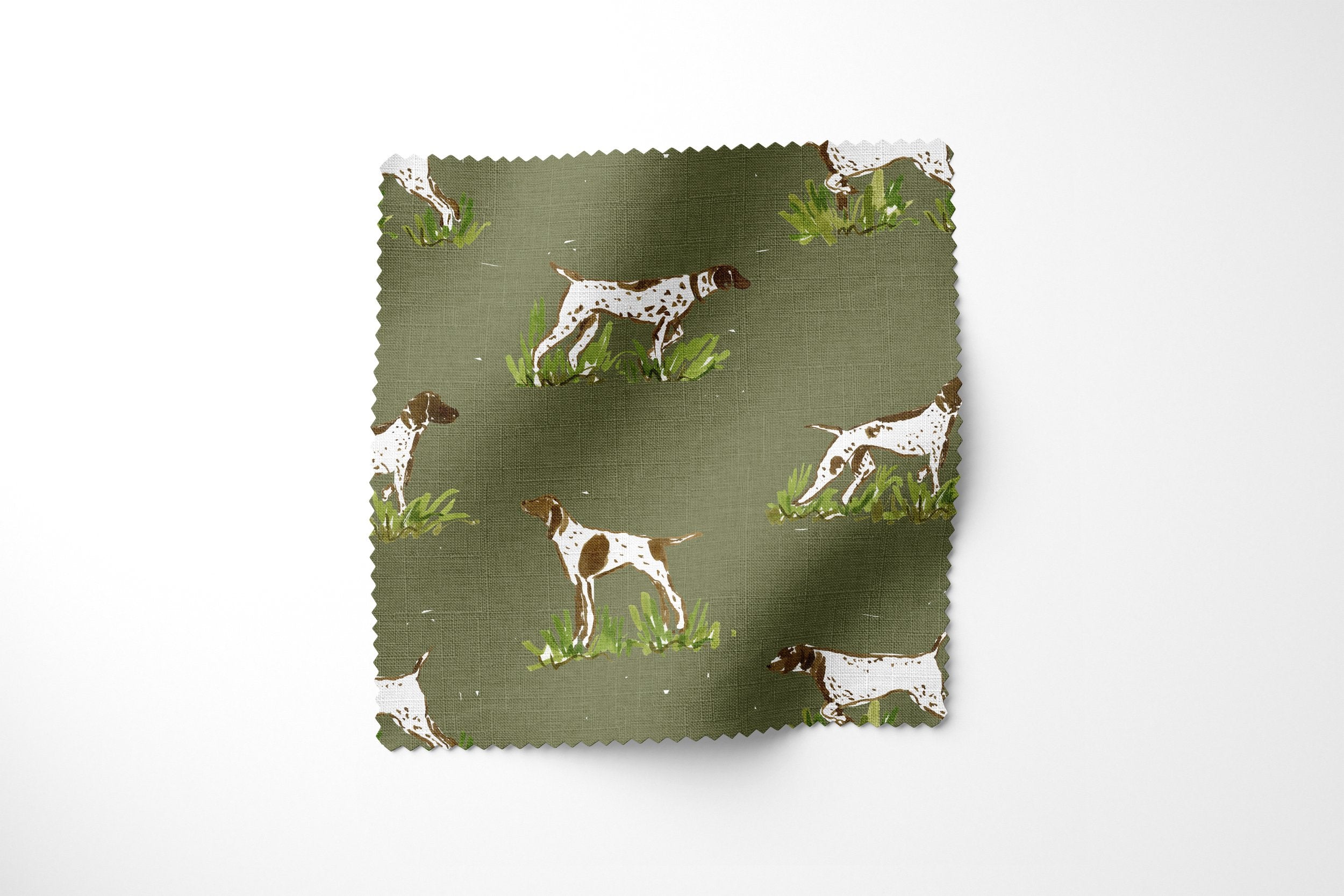 One decorative pillow cover featuring a spaniel dog scene on home decor weight fabric by artist Camilla Moss.