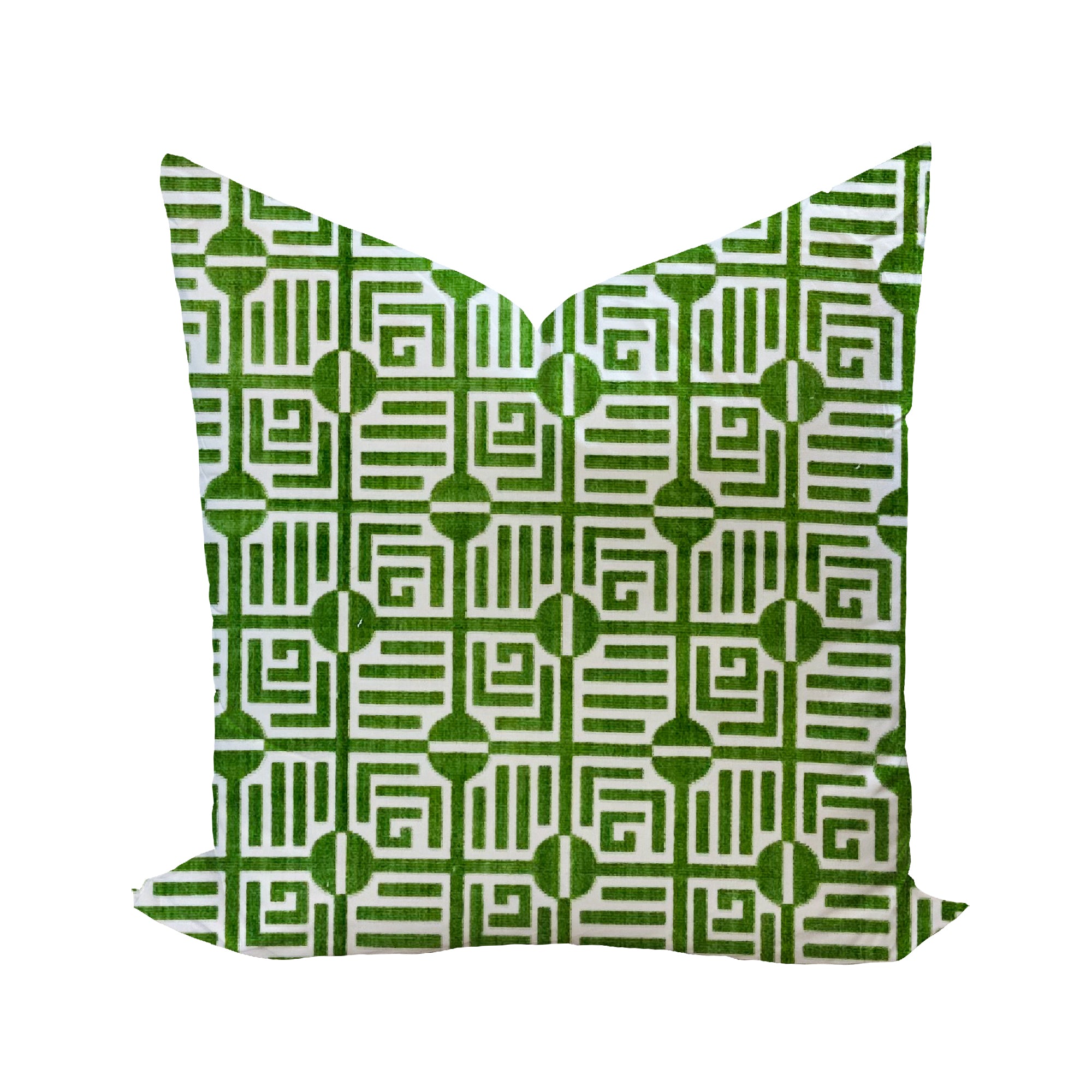 One decorative pillow cover featuring a key like velvet design on home decor weight fabric.