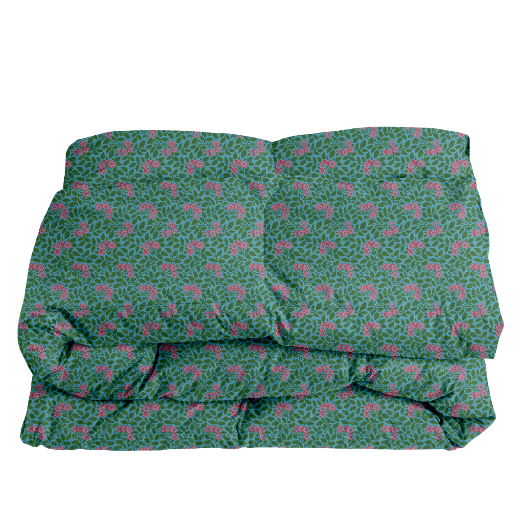 Maggie in Emerald & Orchid on Storm Comforter