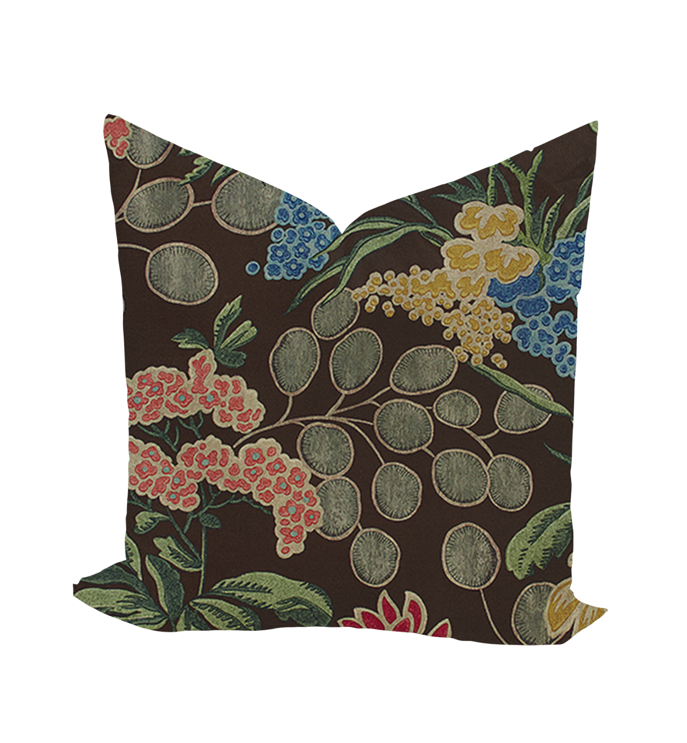 A lush field of flowers grows wildly in this large-scale pattern. Wild and organic, Meadow features money plant seeds that add an airy, circular motif to the stylized florals and leaves. Subtle, pale tones in sage and blush exude refinement and elegance, while an earthier brown adds warmth while telling the bold floral colors to pop. This print is also available as wallpaper!