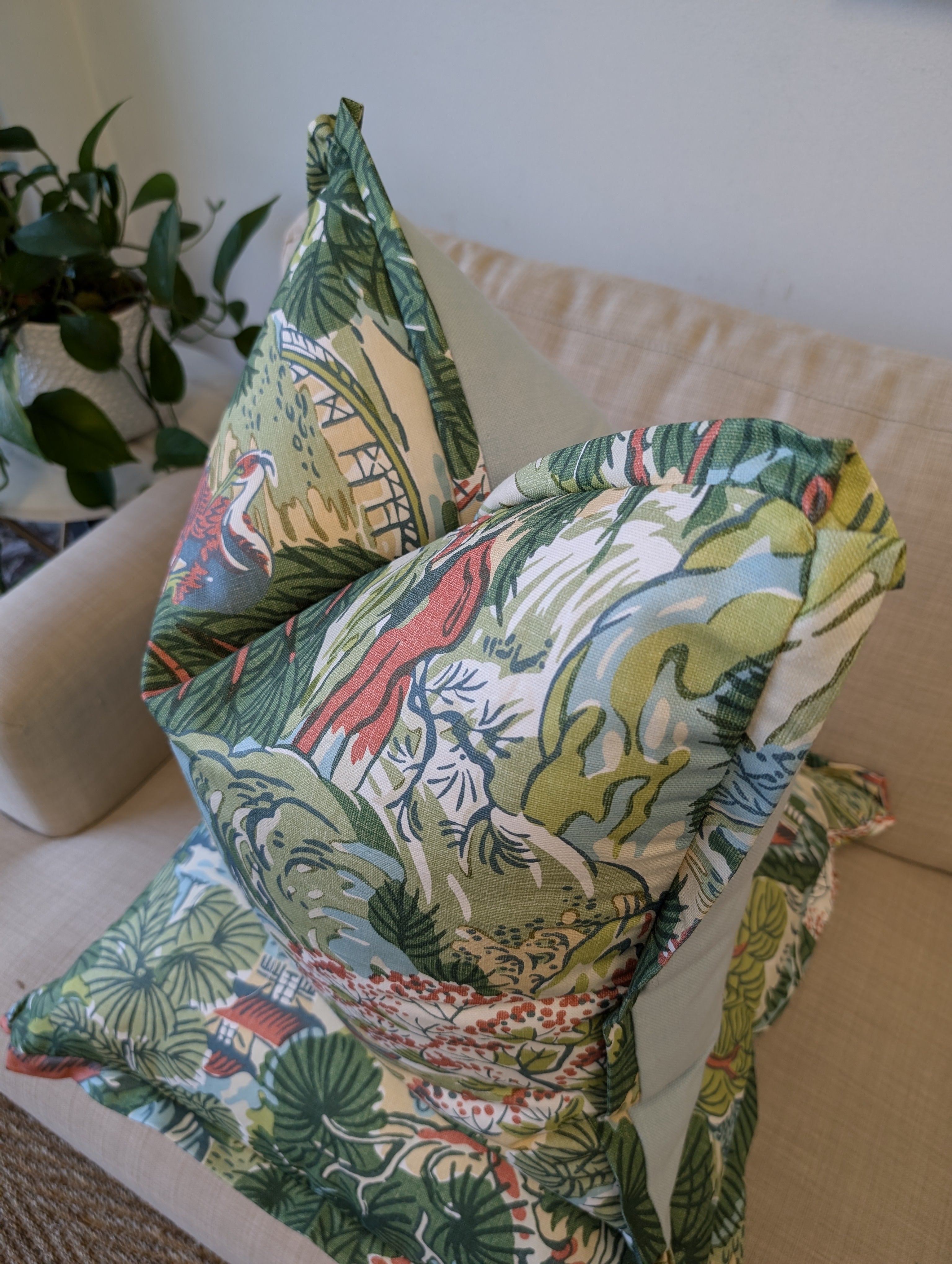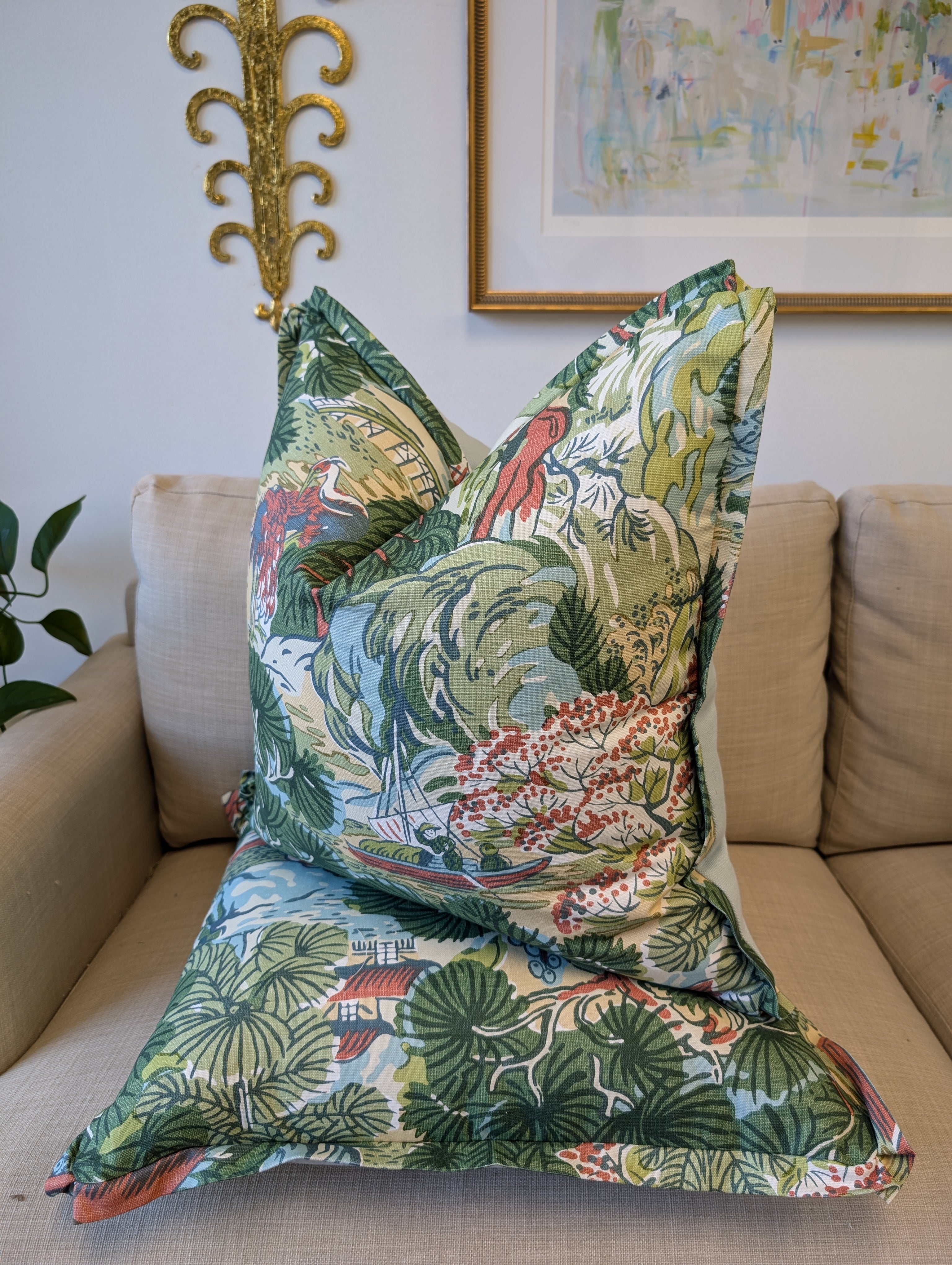 Pagoda Trees in Coral & Green by Thibaut Pillow Cover