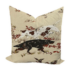One decorative pillow cover featuring a hunting dog scene on home decor weight fabric by Schumacher.