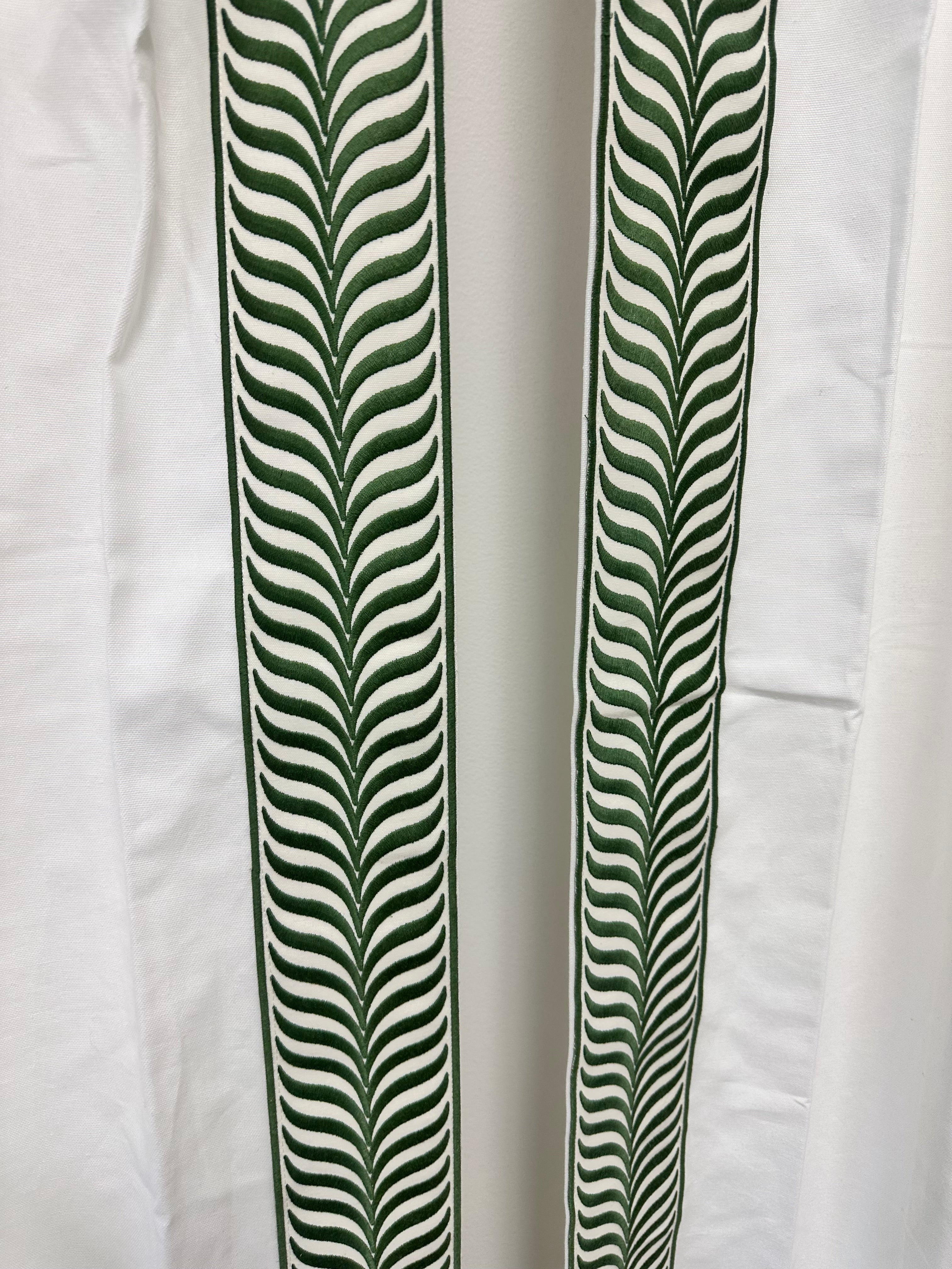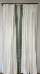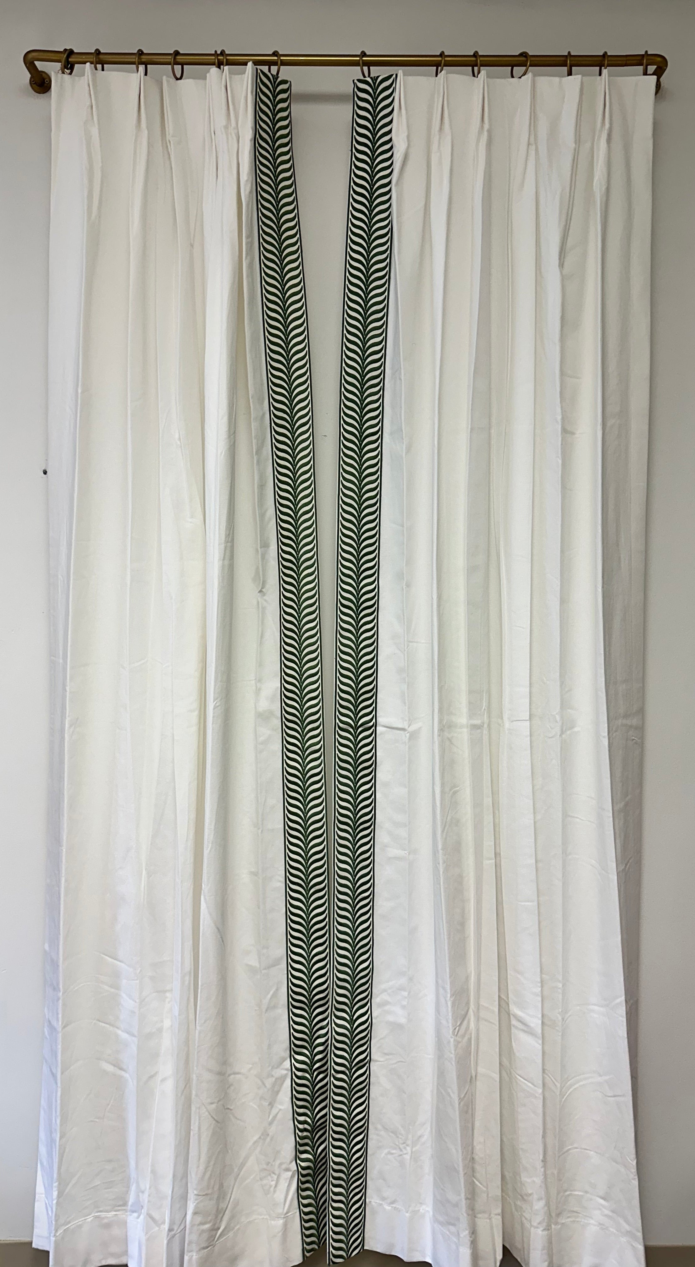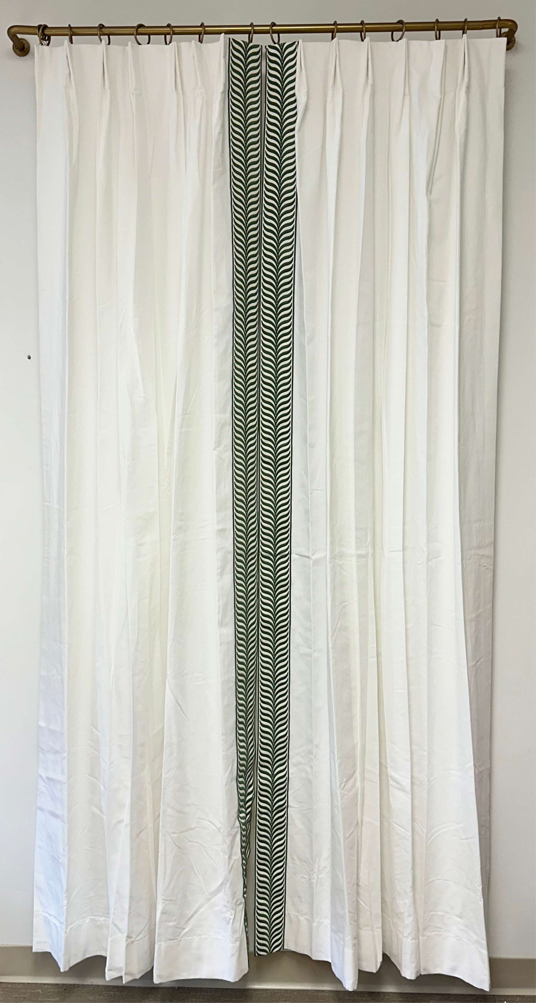 Ready to Ship :: White Drapery Panel with Wave in Green Tape on Lead Edge (2 pair available), 90" finished length