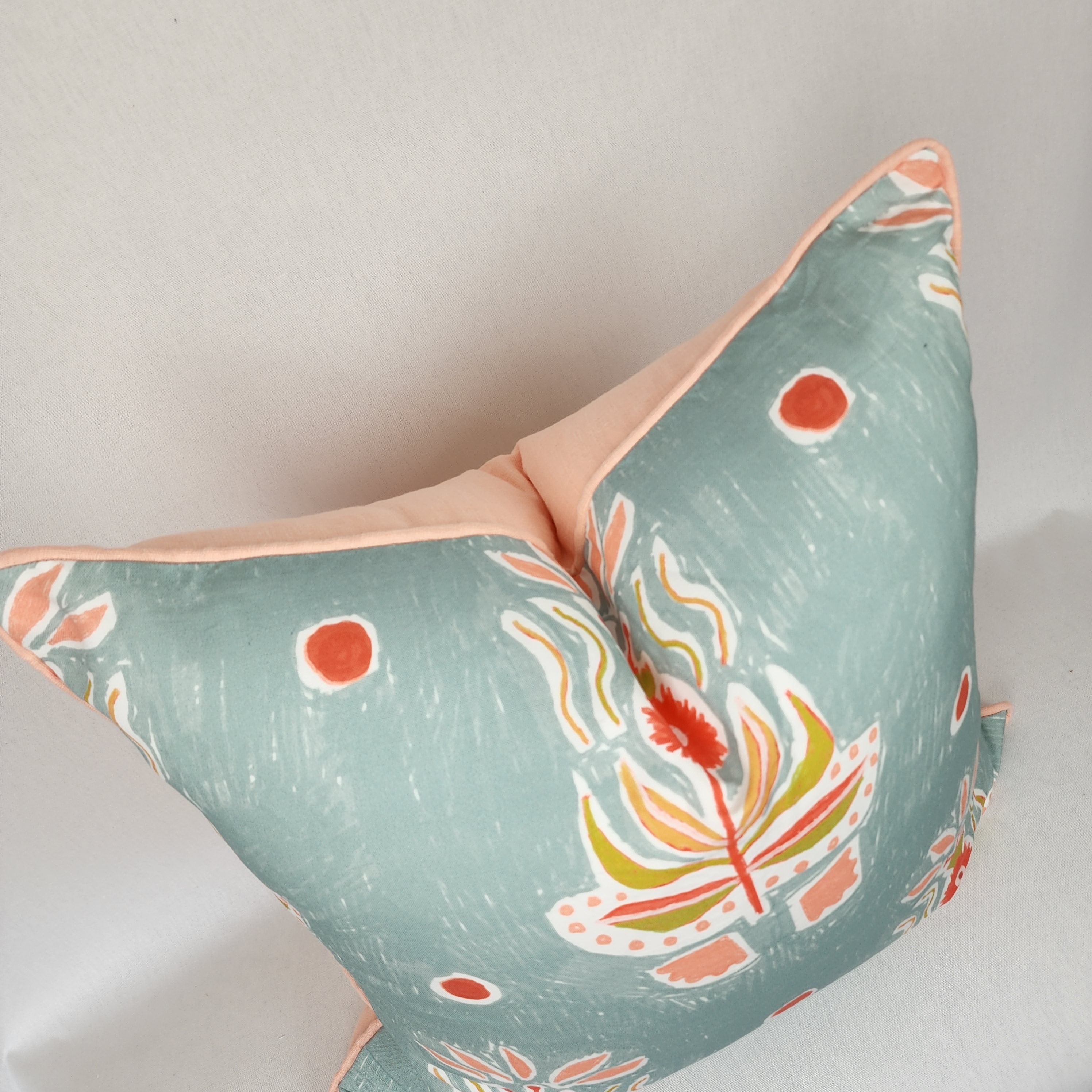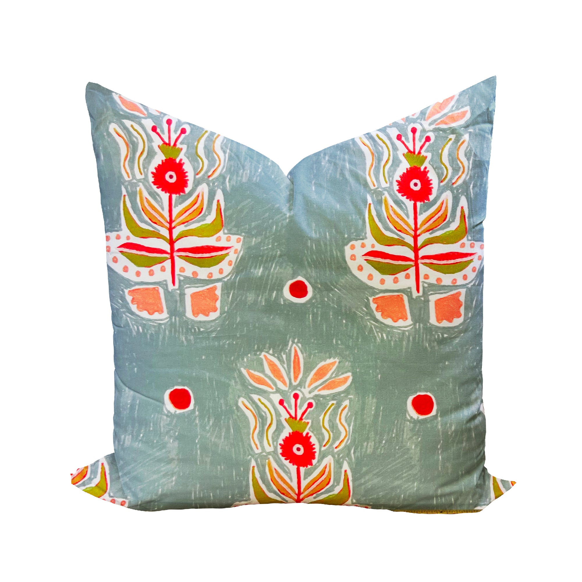 One decorative pillow cover featuring a floral/botanical design on home decor weight fabric by artist Lulie Wallace.