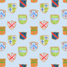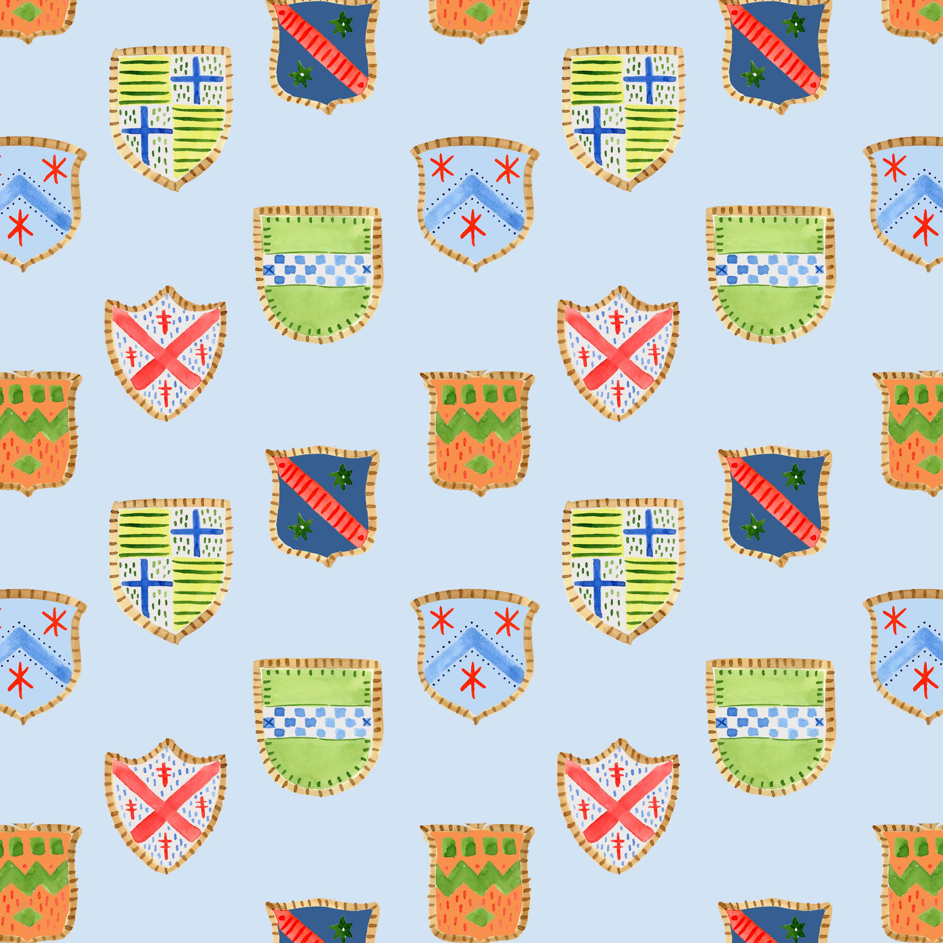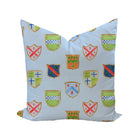One decorative pillow cover featuring a shield design on home decor weight fabric by artist Camilla Moss.