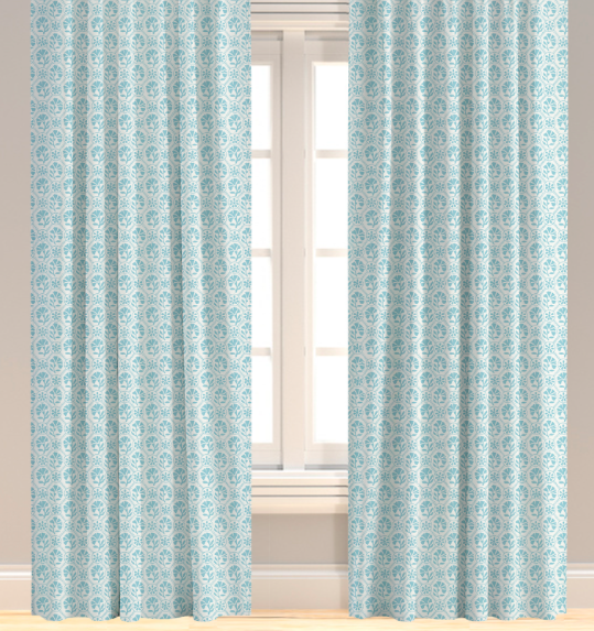 Drapes are finished with 4" header with buckram, 5 pleats and a 3.5" return and overlap. Each single width panel needs 7 rings and comes with pins set behind the pleat. (Adjusting the pin up or down can help lower or raise the panel a bit for slight adjustments as needed upon hanging). We always suggest waiting to hang drapery rods until the drapes are on hand, as it's easier to get the right placement/height when hanging the rod and drapery together.