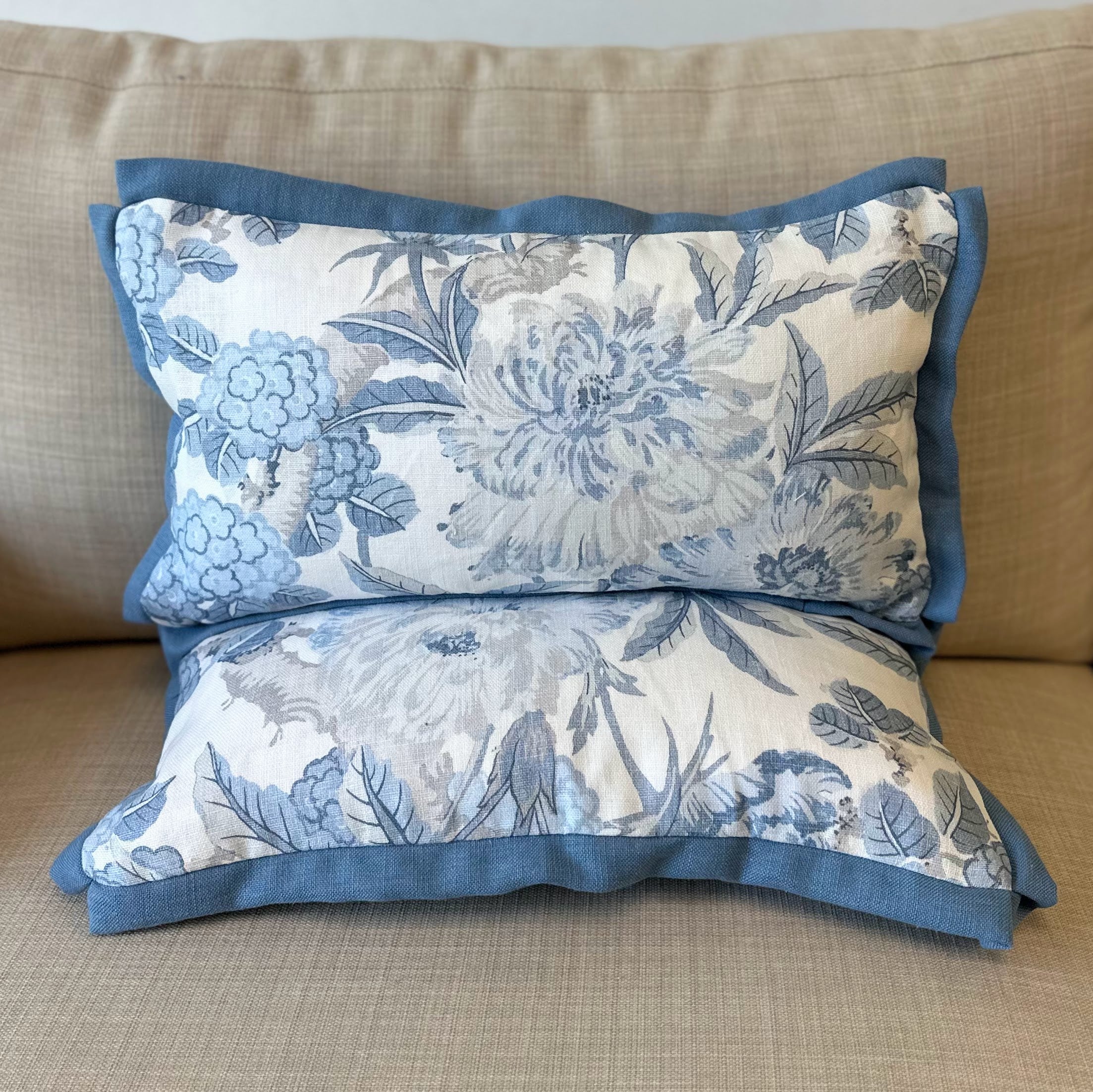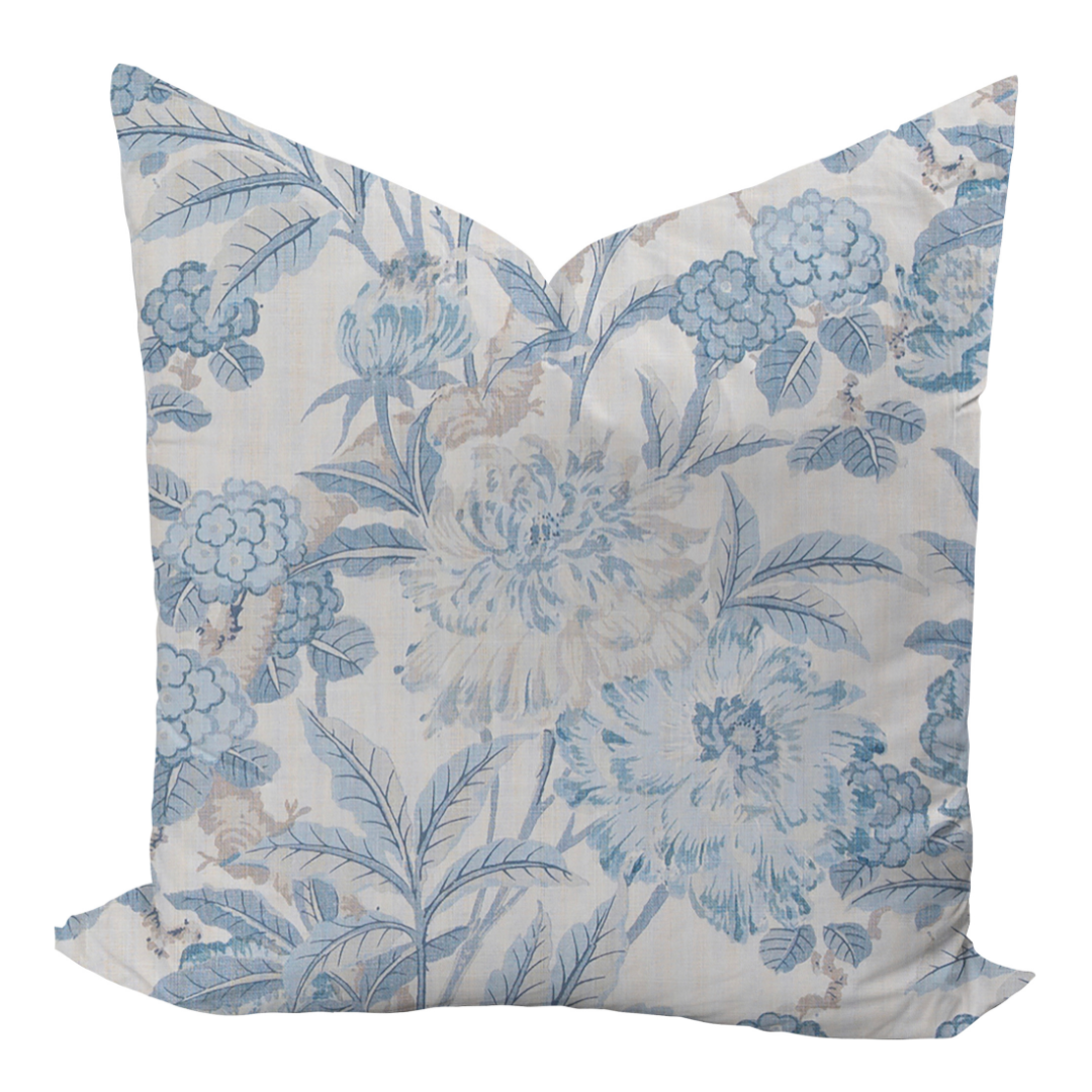 One decorative pillow cover featuring a floral design design on home decor weight fabric by Lee Jofa.