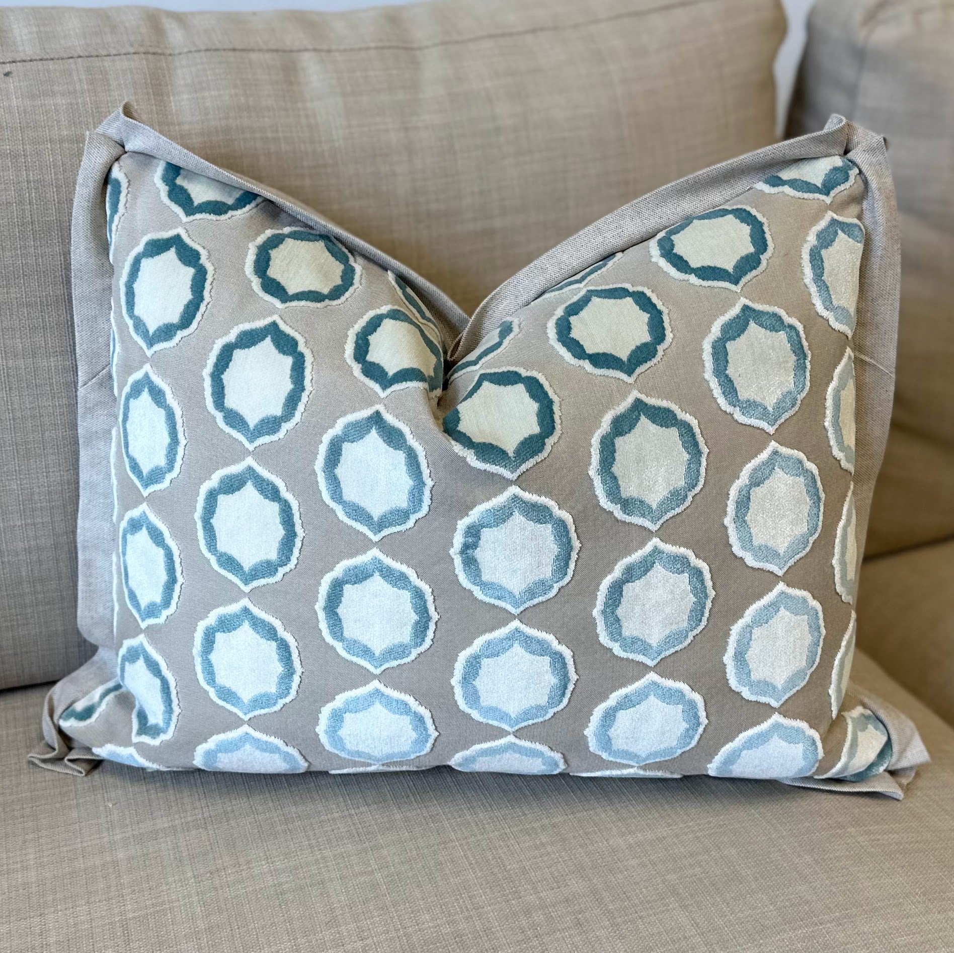 One decorative pillow cover featuring a fantastic cut velvet design on home decor weight fabric.