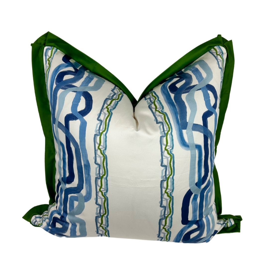 One decorative pillow cover featuring a dizzy stripe like design on home decor weight fabric by Ferrick Mason.