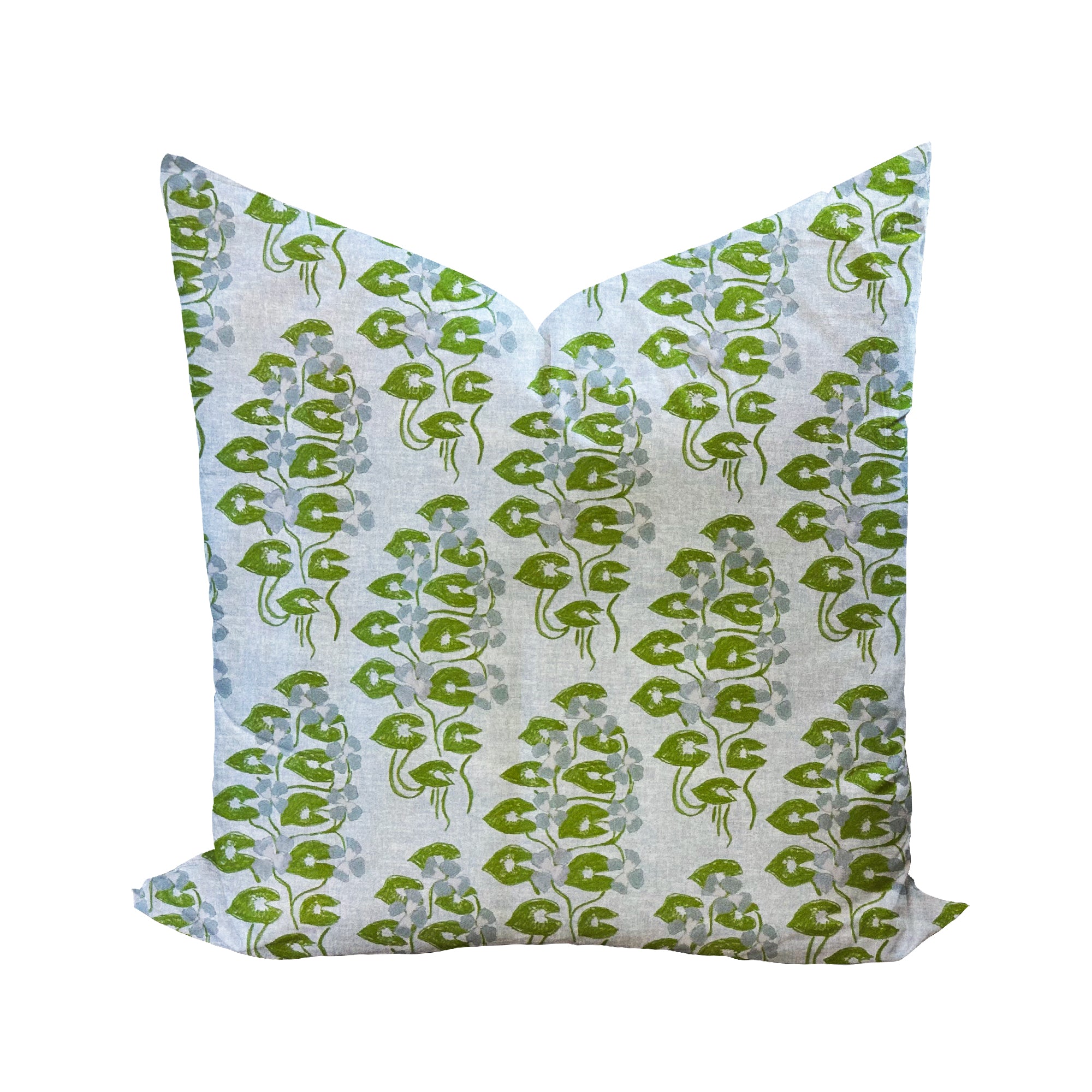 One decorative pillow cover featuring a floral/botanical design on home decor weight fabric by artist Lulie Wallace.