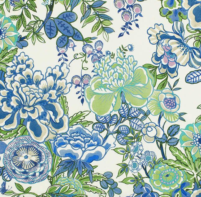 WWH Faves - Thibaut's Peony Garden in Blue & Green w/ Carlisle Stripe Flange