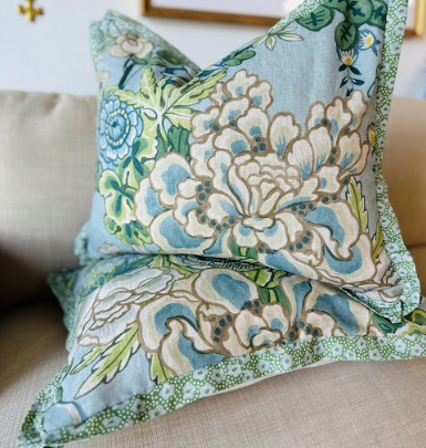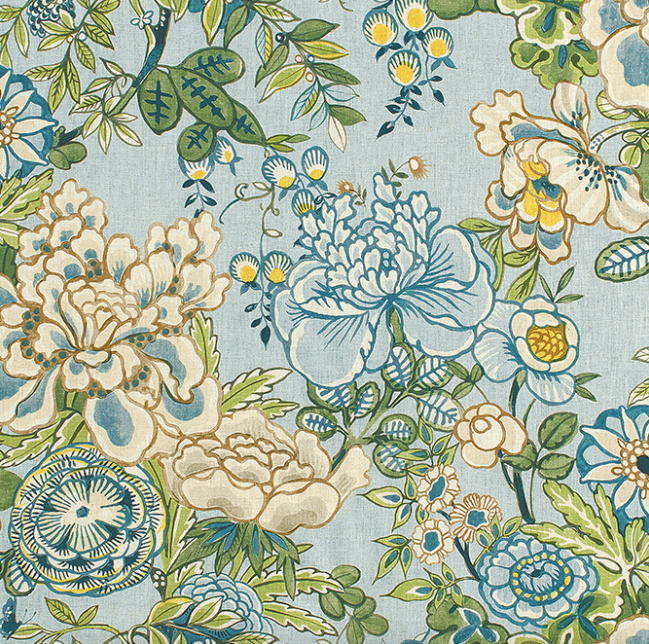 WWH Faves - Thibaut's Peony Garden in Spa Blue with Rose Dots Flange