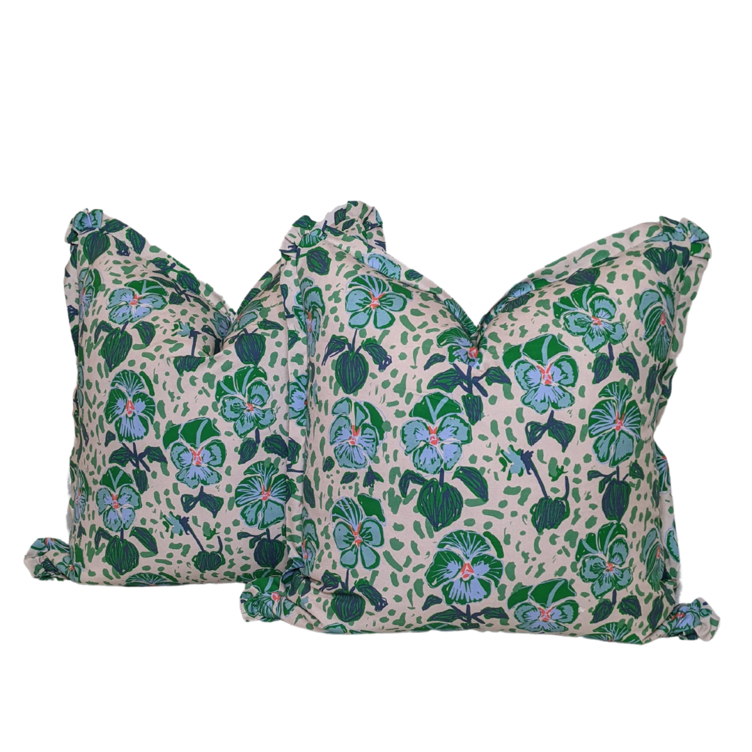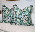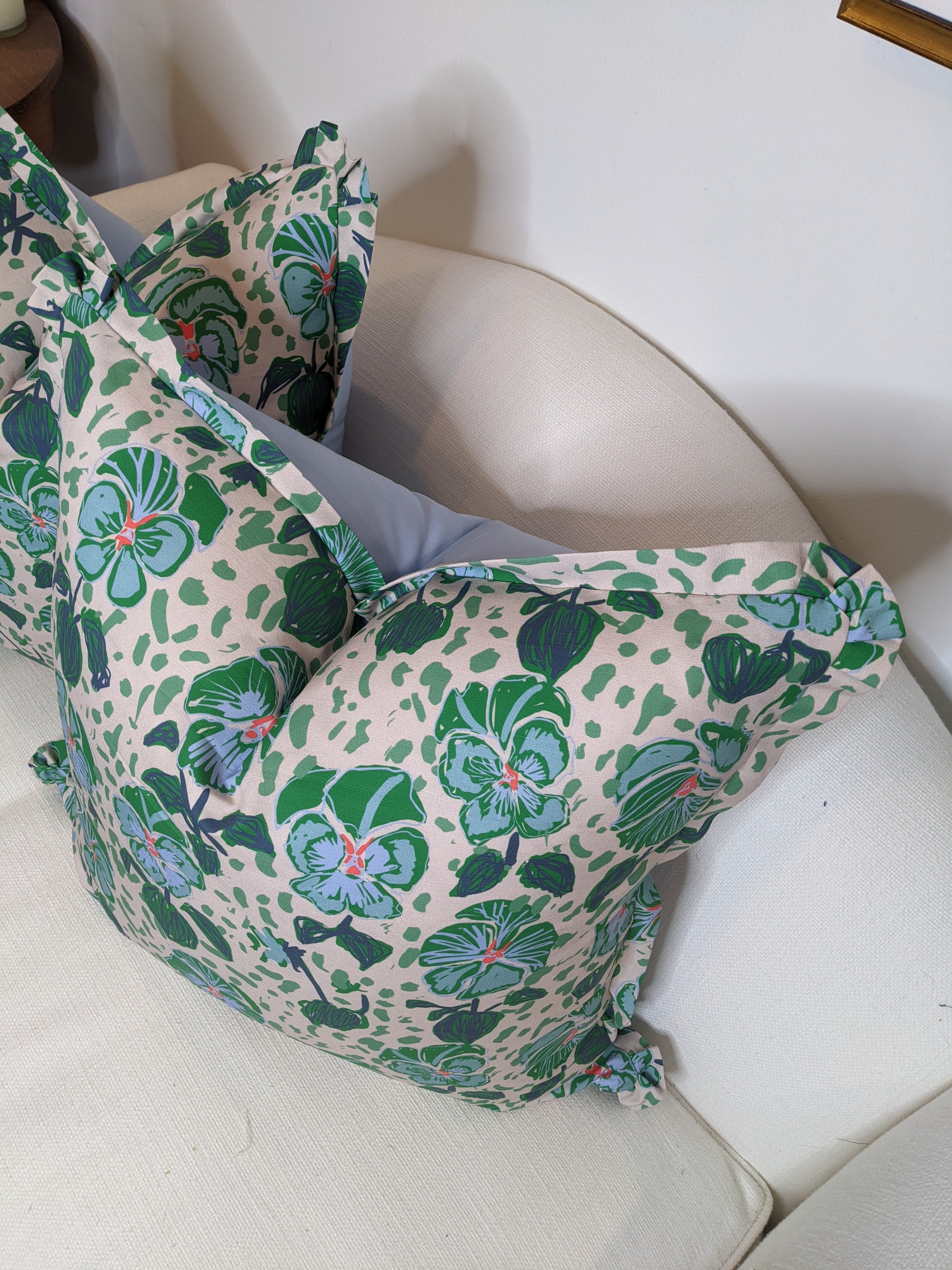 One decorative pillow cover featuring a floral/botanical design on home decor weight fabric by artist Lulie Wallace.