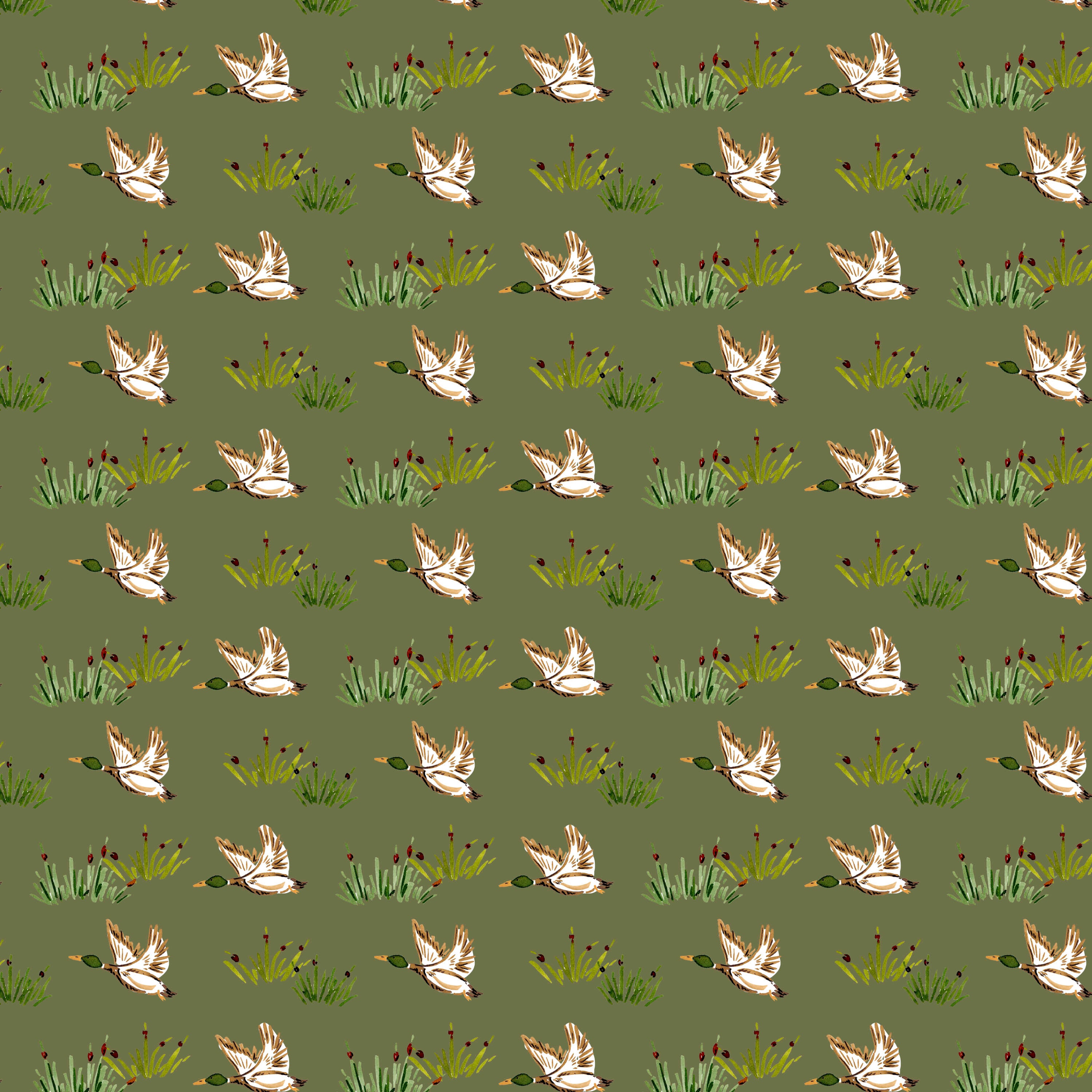 One decorative pillow cover featuring a flying ducks scene on home decor weight fabric by artist Camilla Moss. This design is an exclusive to Wheaton Whaley Home!