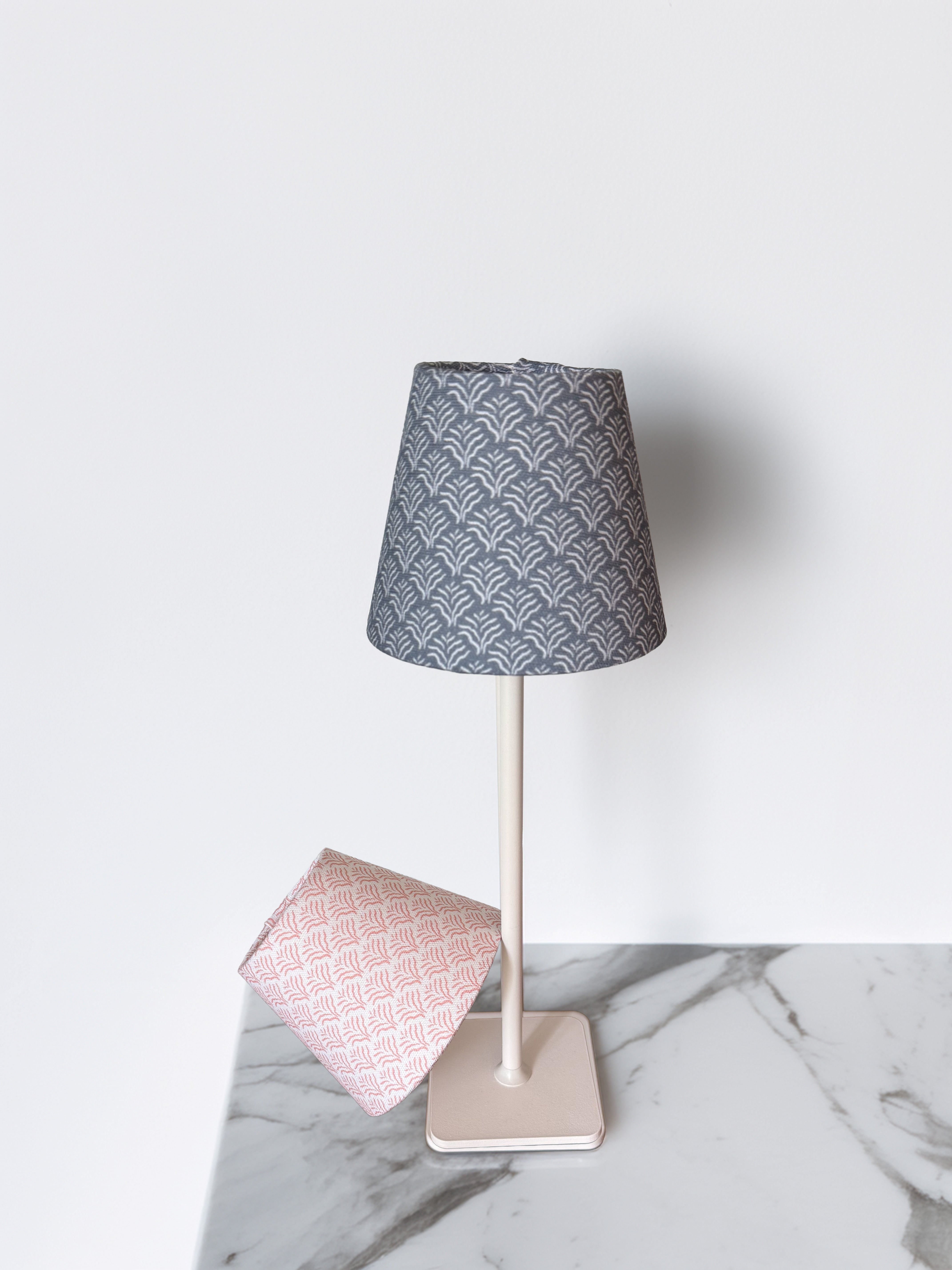 Our block printed cordless shades are the perfect accessory to elevate your LED lamp. Cordless lamp shade fits Poldina Pro and similar. Made by hand in the US.