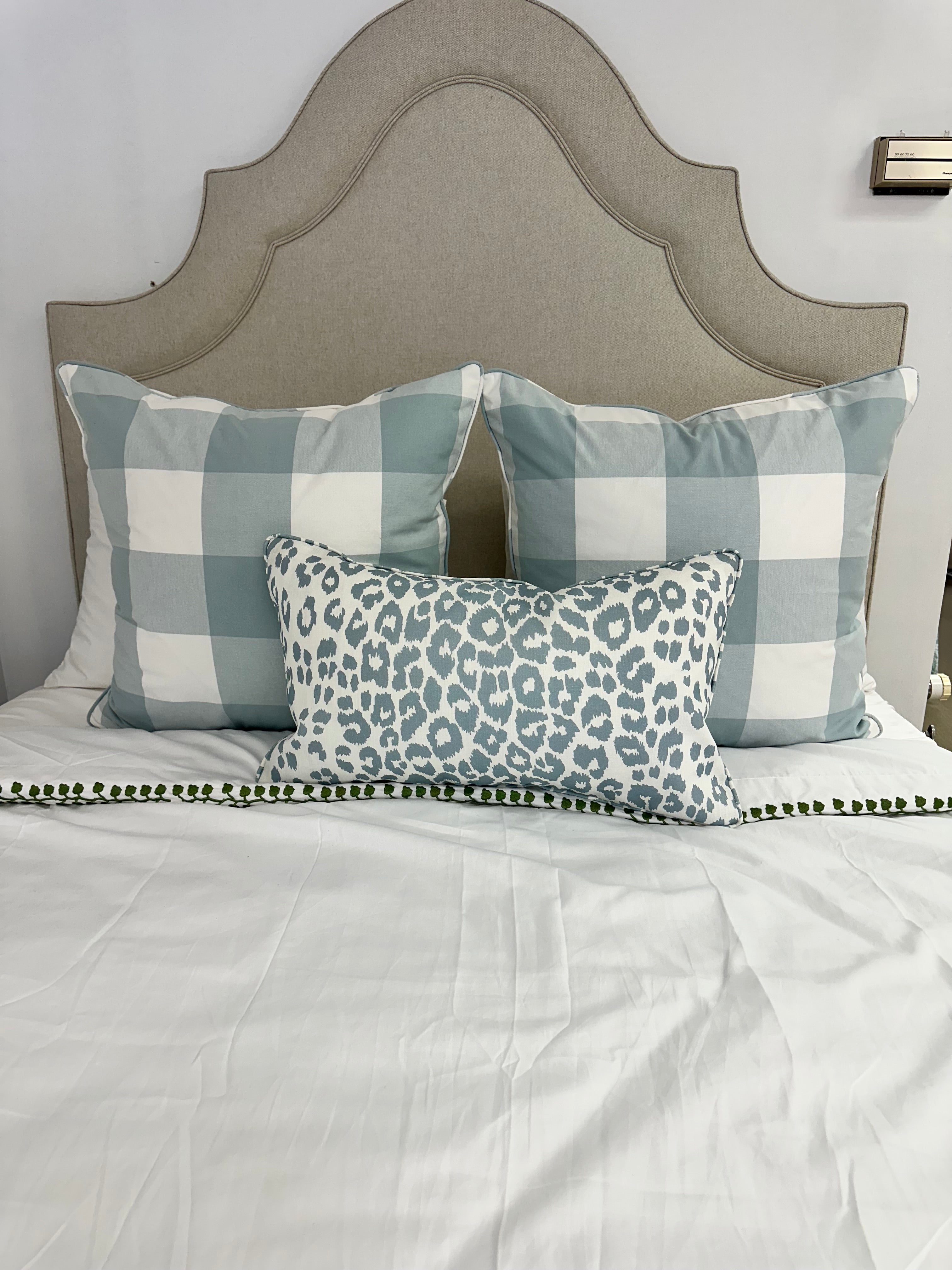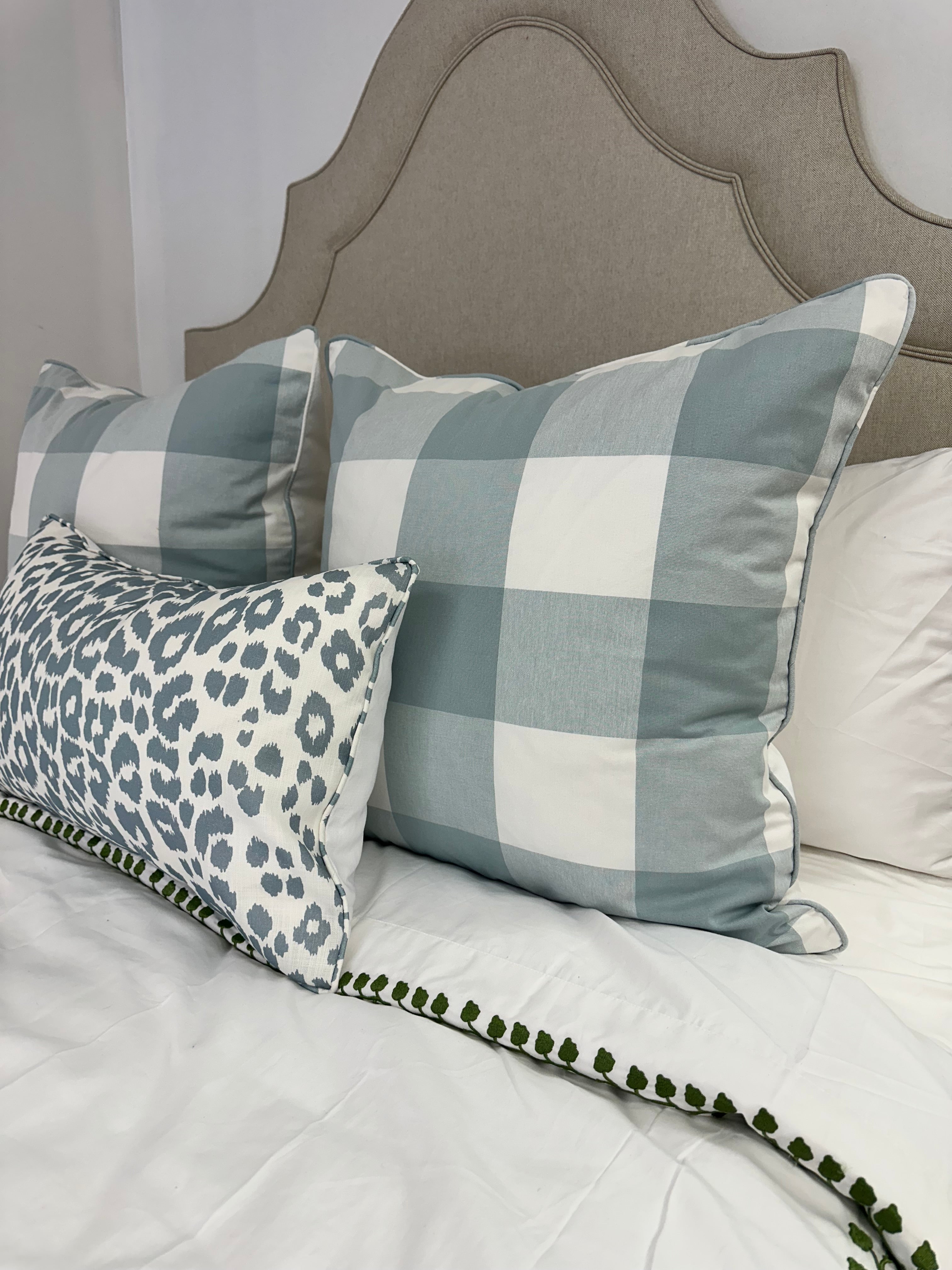 - 2 covers for 26" inserts in Blue/White Buffalo check, self welt, white back