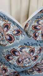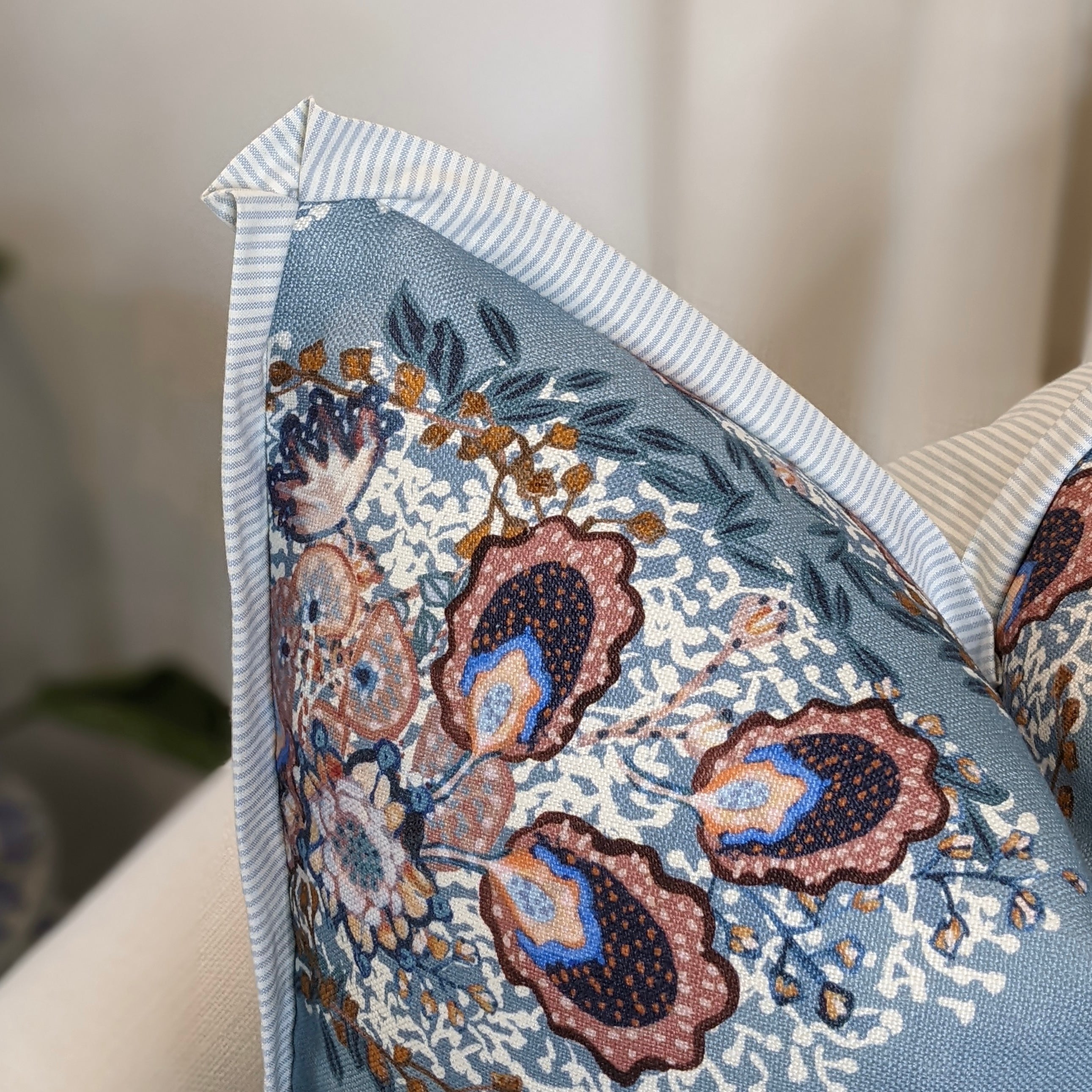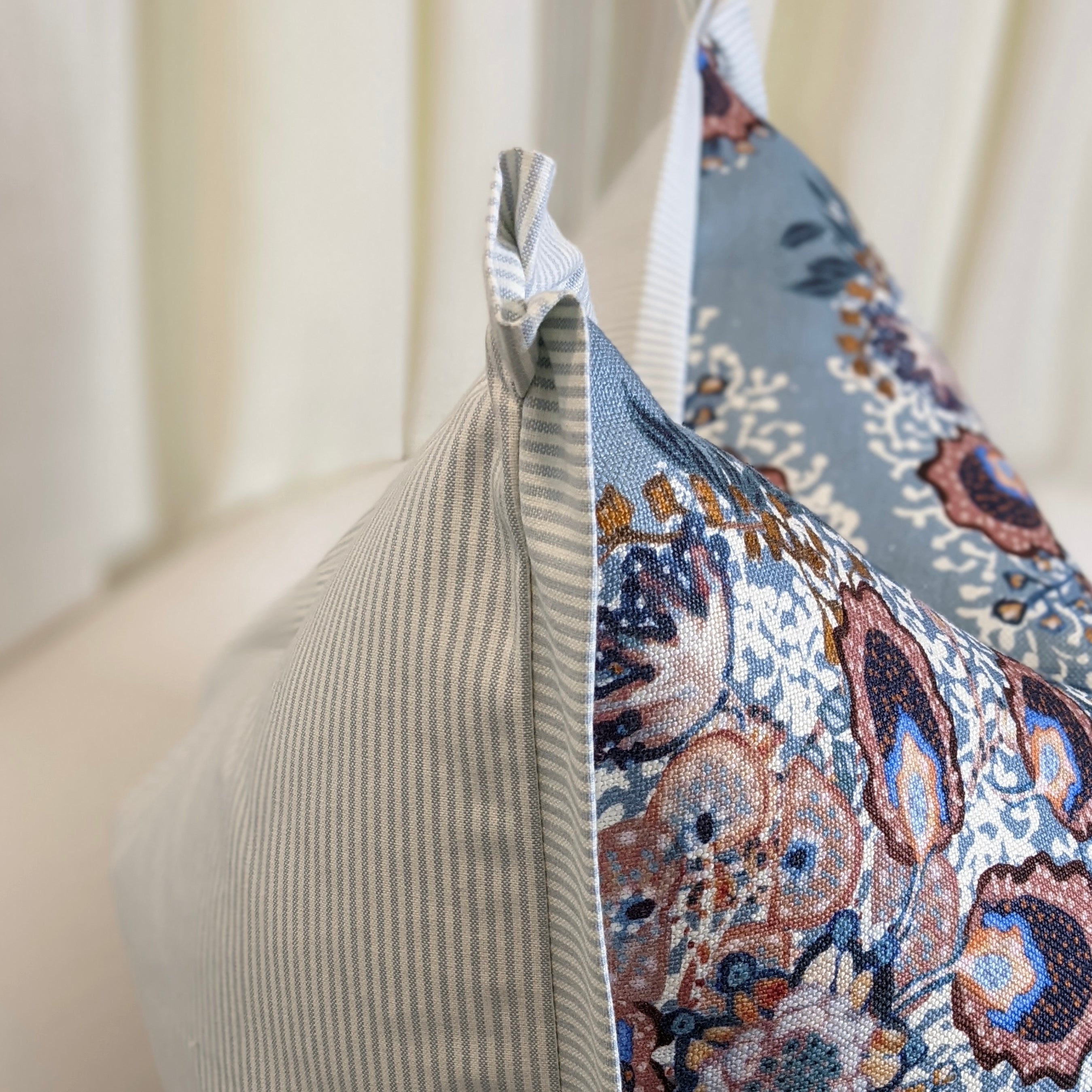 WWH Faves - Heather in Colonial Blue with blue ticking flange & back
