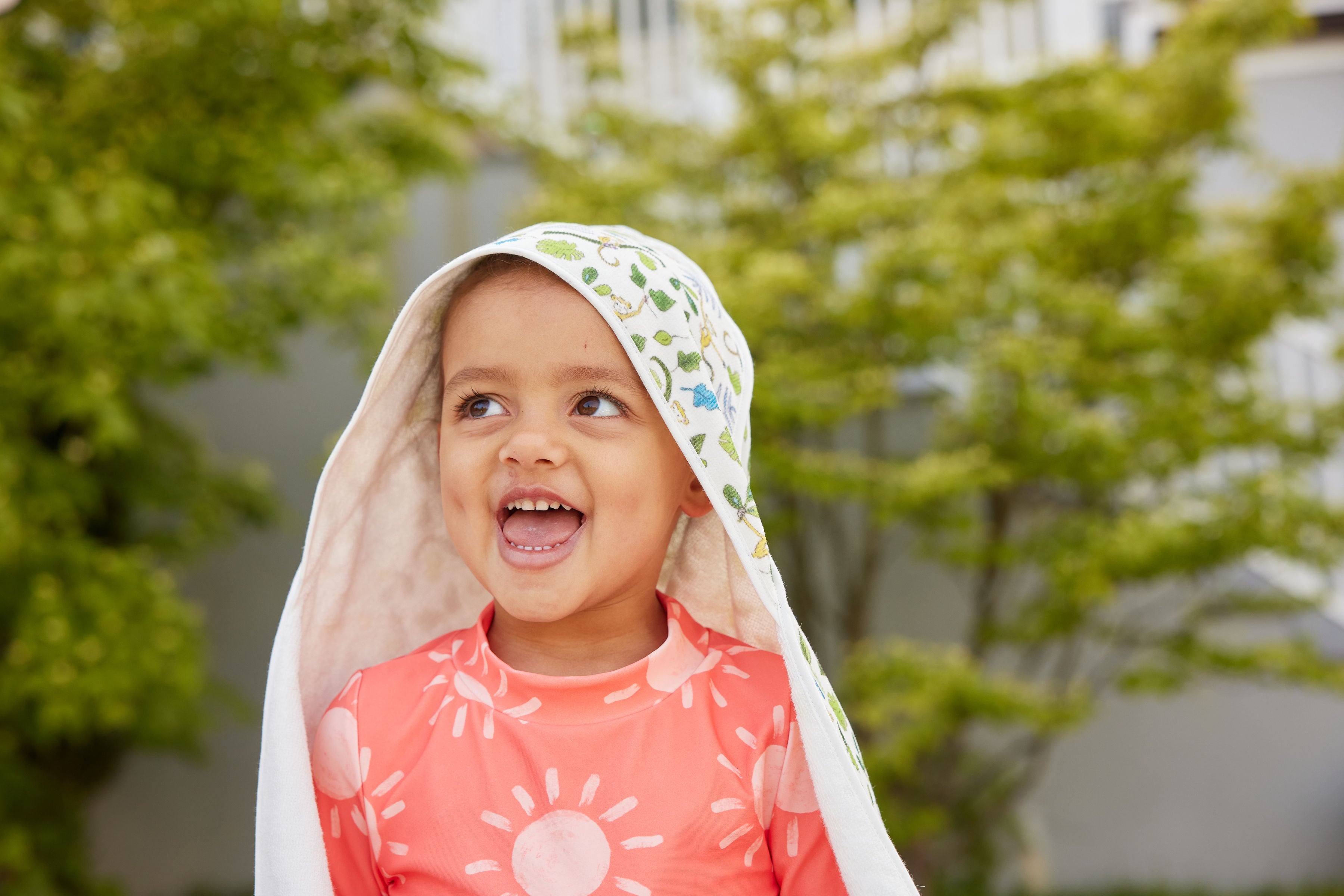 Lemon Piped Hooded Bath Towel & Washcloth Set