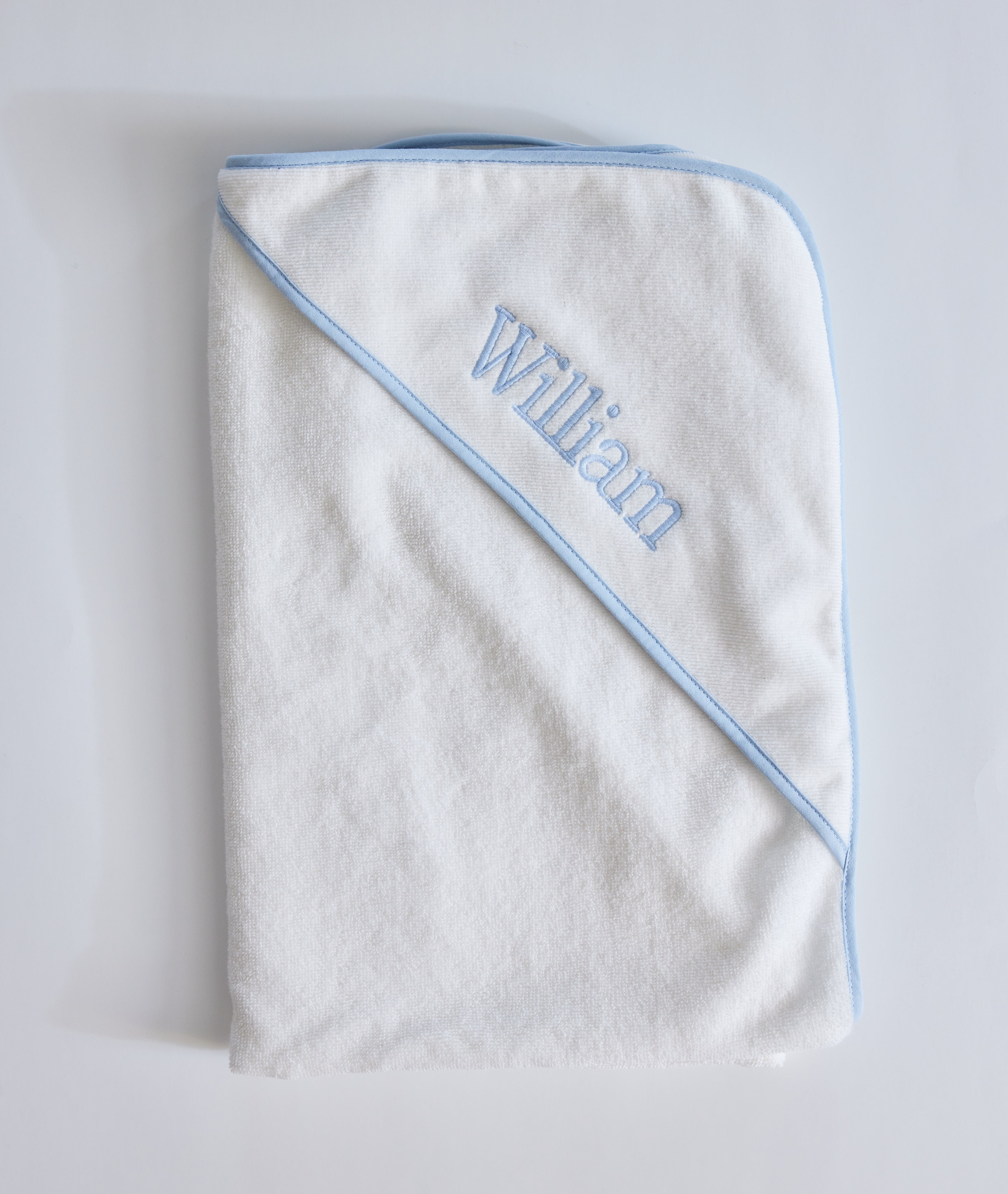 Blue Piped Hooded Bath Towel & Washcloth Set