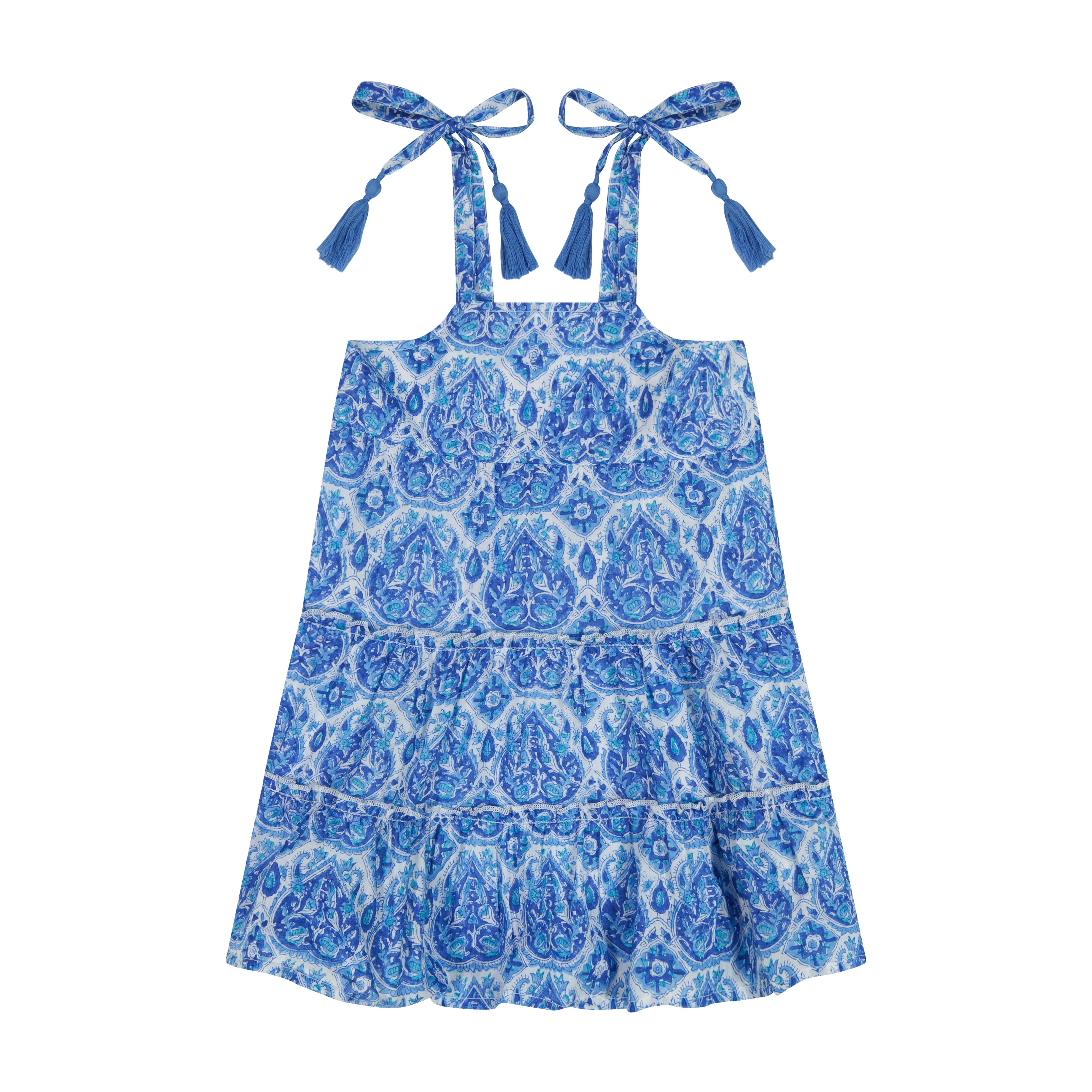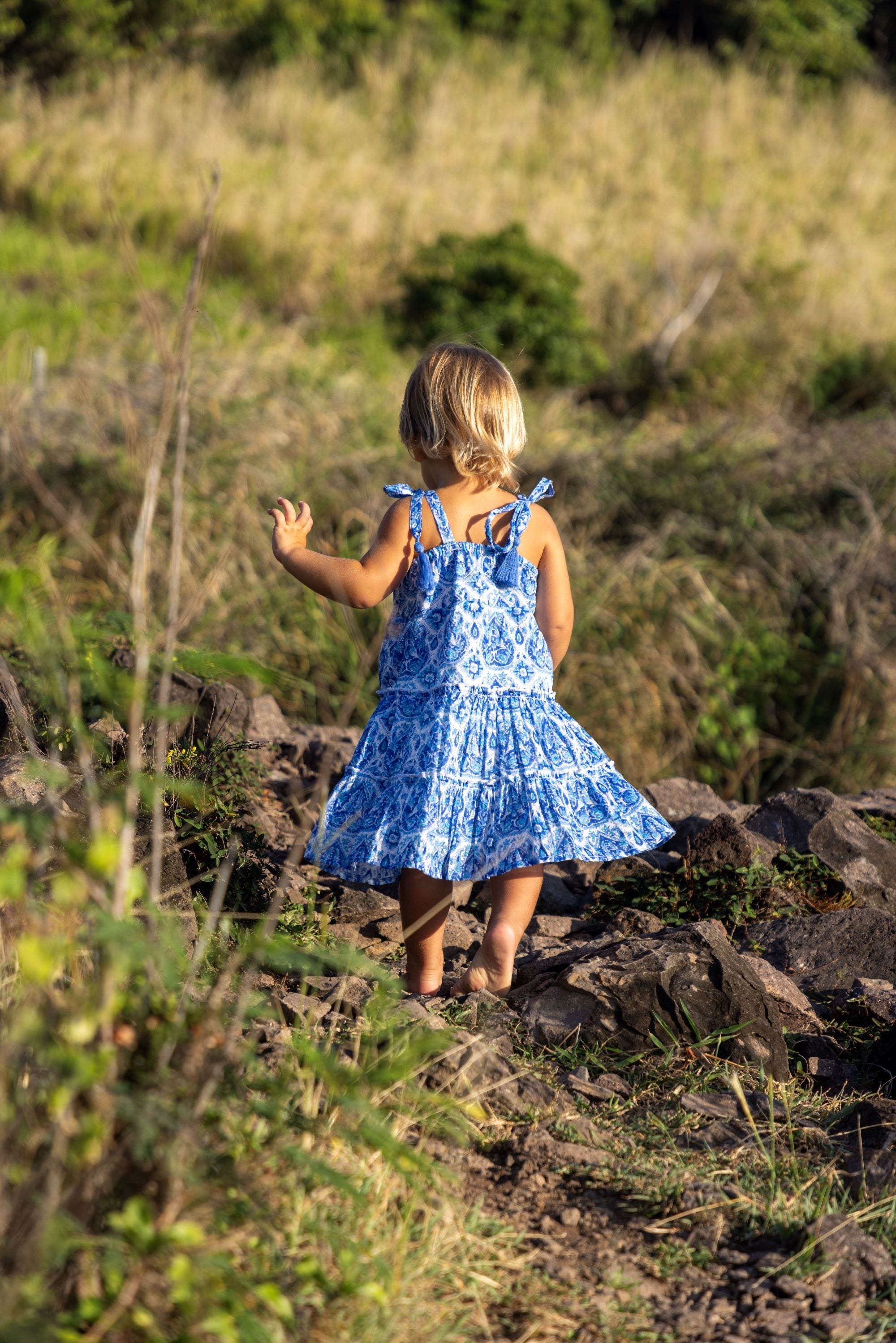 Bella Girl's Shoulder Tie Sundress Blue Paisley