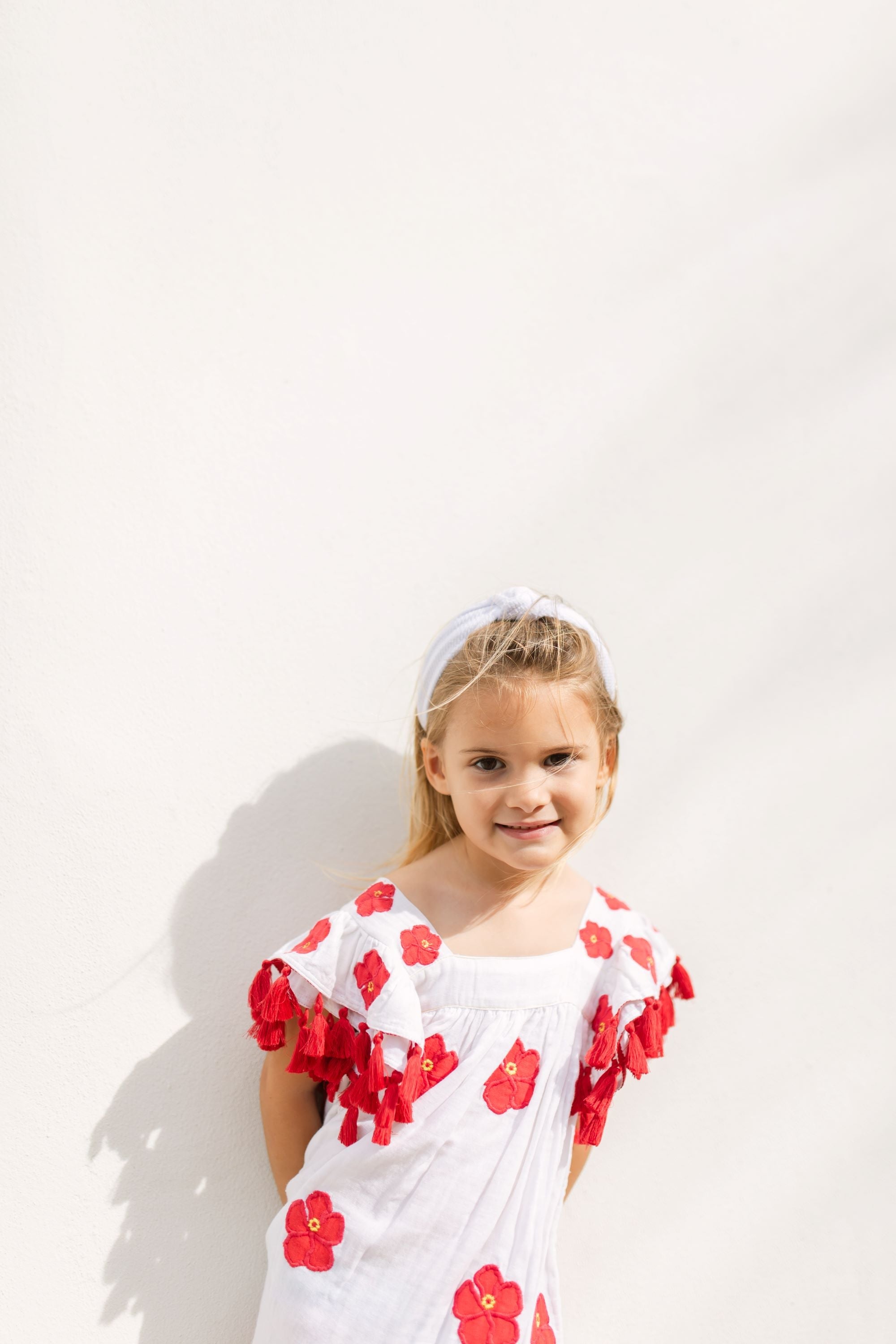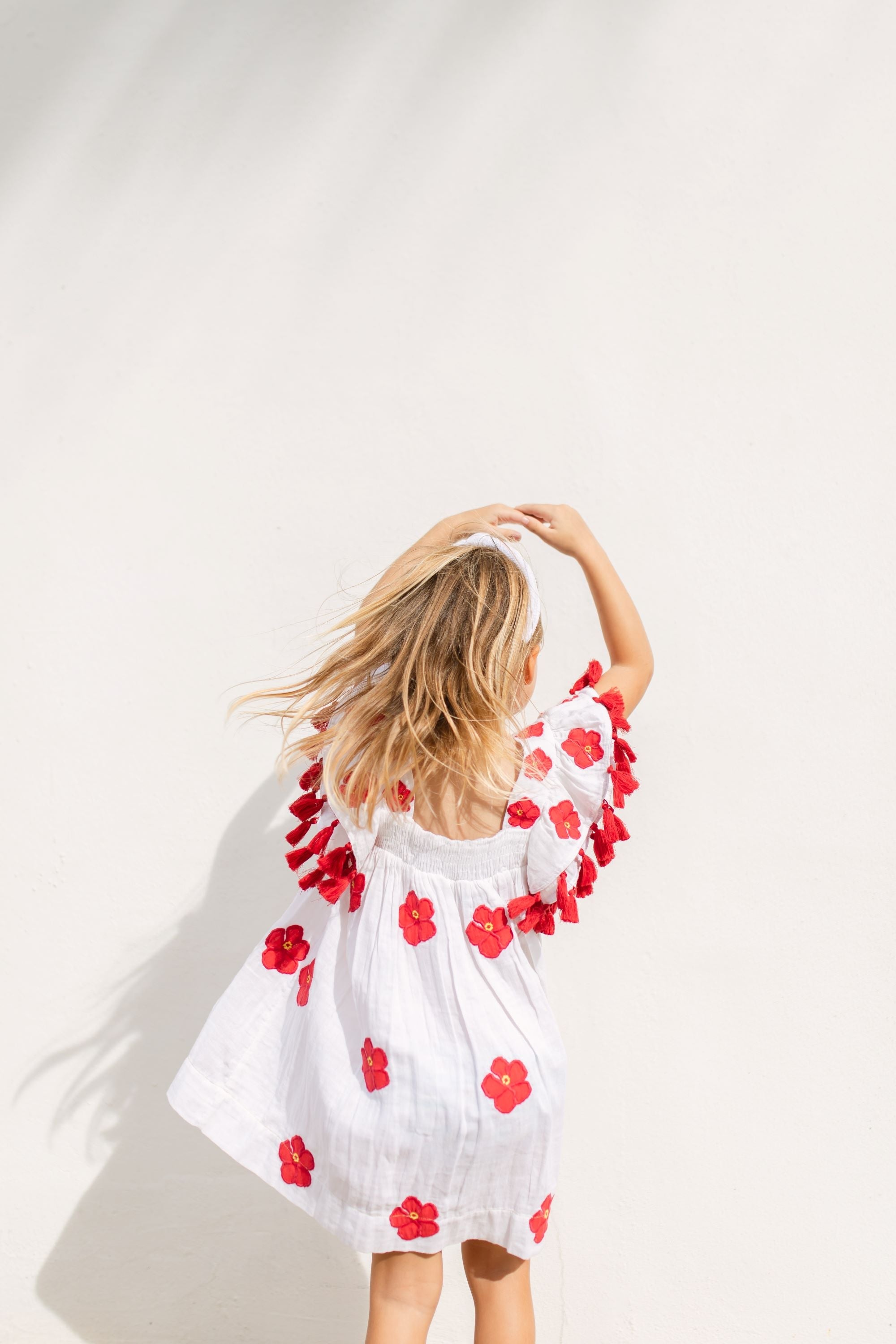 Serena Girl's Tassel Dress Red White Navy Embroidery