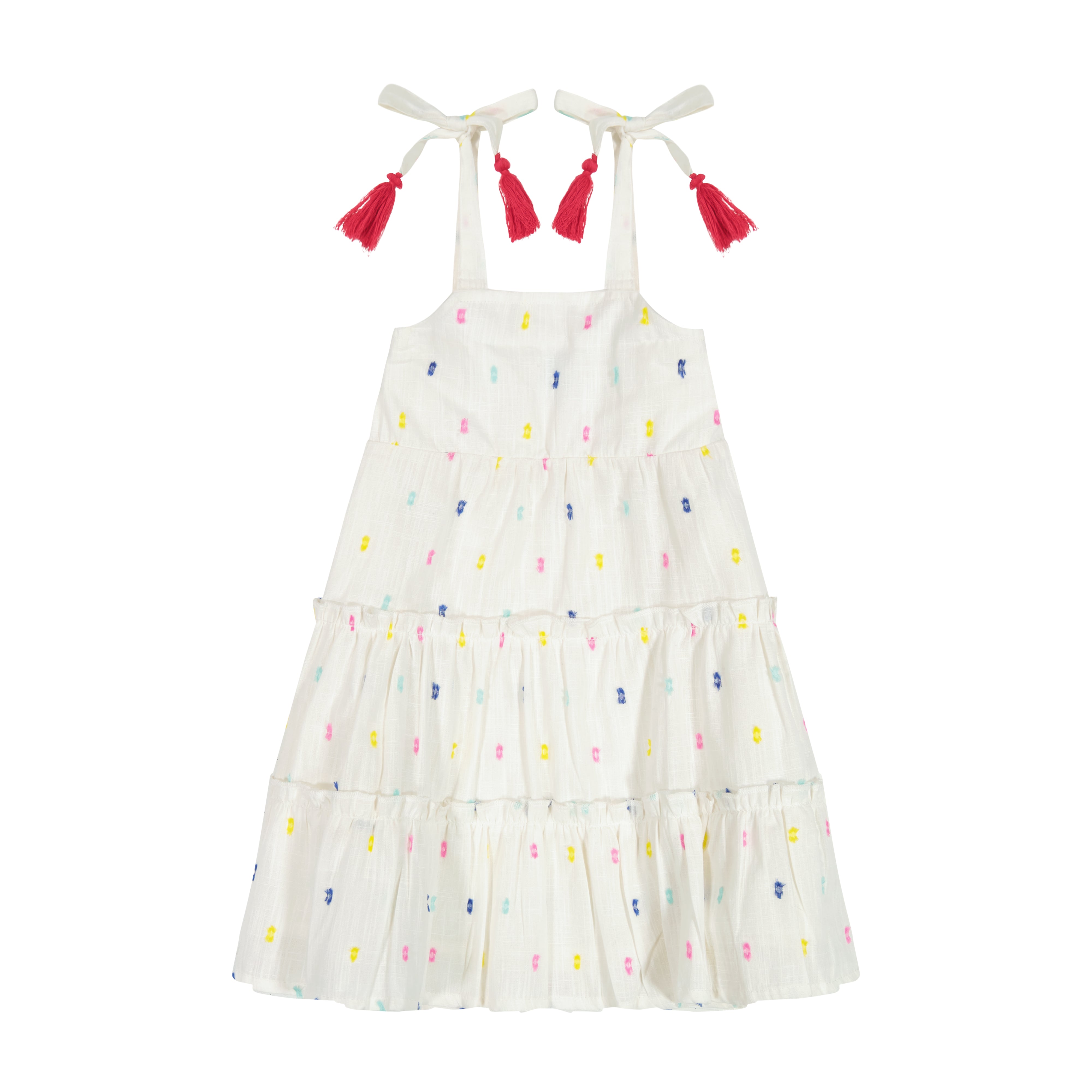 Bella Girl's Shoulder Tie Sundress Confetti Swiss Dot