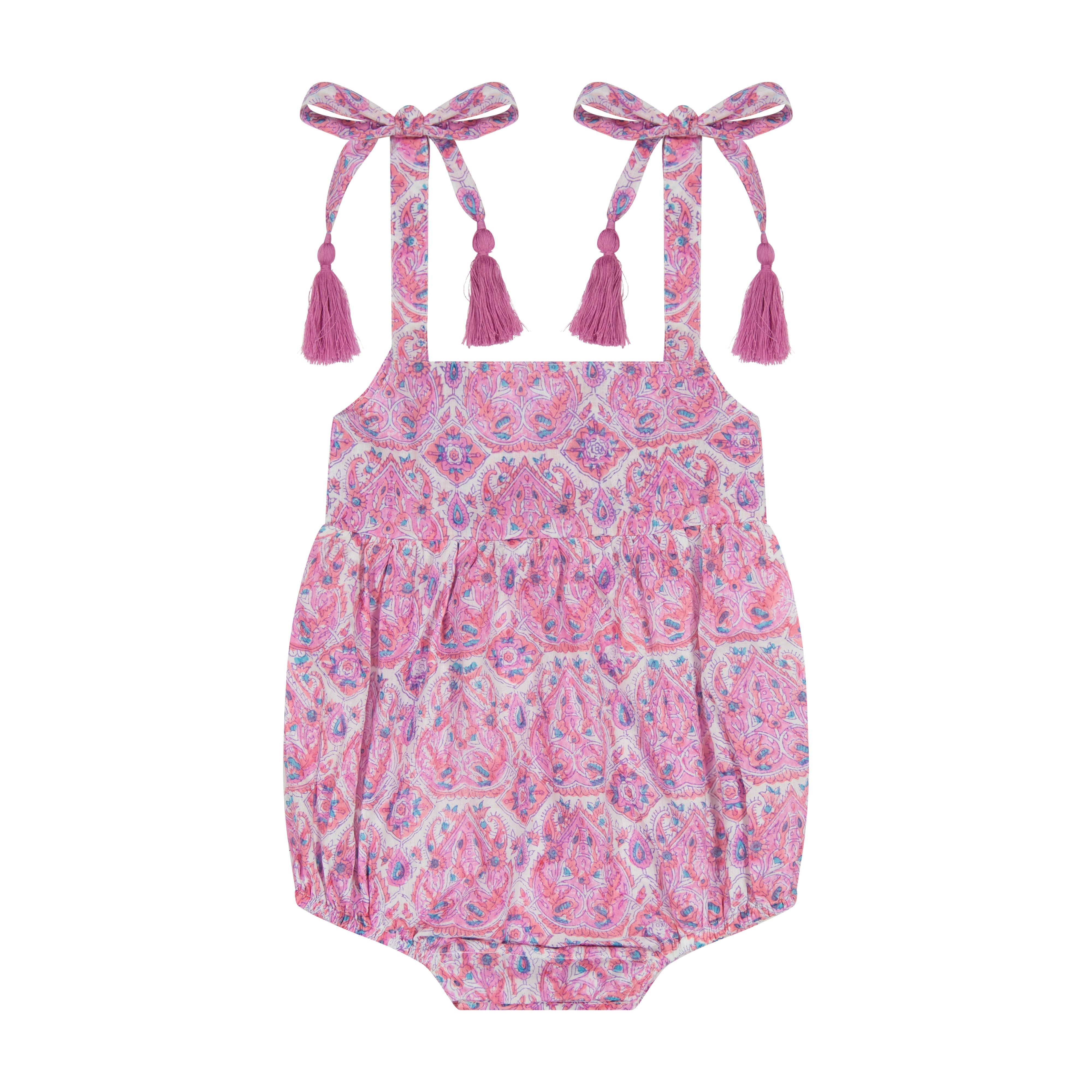 Sweet shoulder tie with tassel detailing make the Zoe romper an endless summer staple for your little.