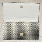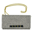 Jana is made from a classic Thibaut basket weave grasscloth. The inside of the clutch is lined with white linen, and contains accordion sides with grommets for a removable chain (the chain is included with all crossbody clutches). Overall dimensions are 10” x 5” with a magnetic snap closure. Click the "Customize Your Bag" button below to see decorative hardware options, and choose your favorite!