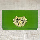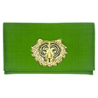 This clutch is made with an emerald Dupioni silk, and has become a flagship bag for Garland Bags because of its beauty and versatility. The interior is lined with black linen, and contains accordion sides with grommets for an optional chain (chain sold separately). Click the "Customize Your Bag" button below to see decorative hardware options, and choose your favorite! Overall dimensions are 12” x 7” with a magnetic snap closure.
