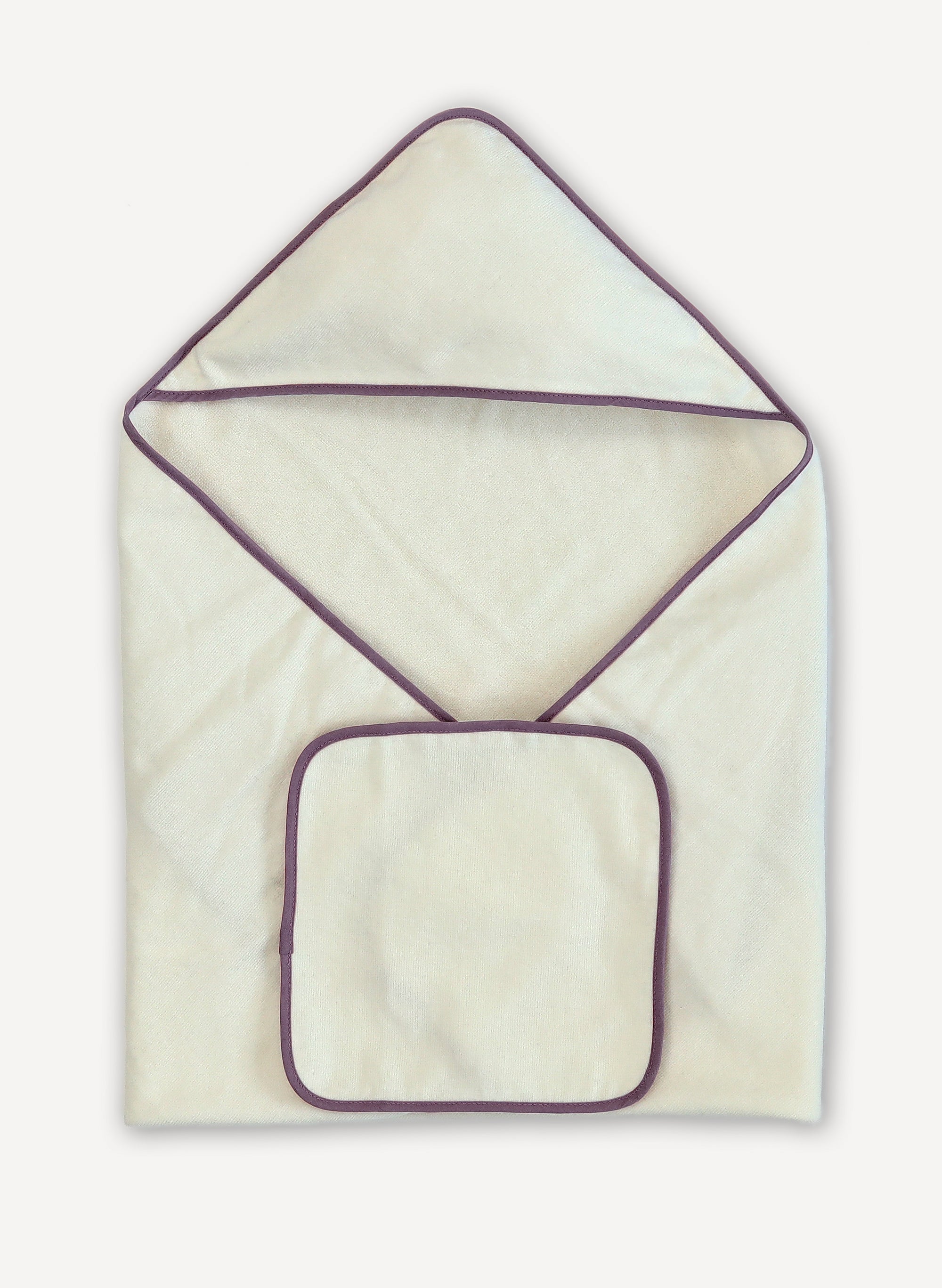 Lavender Piped Hooded Bath Towel & Washcloth Set