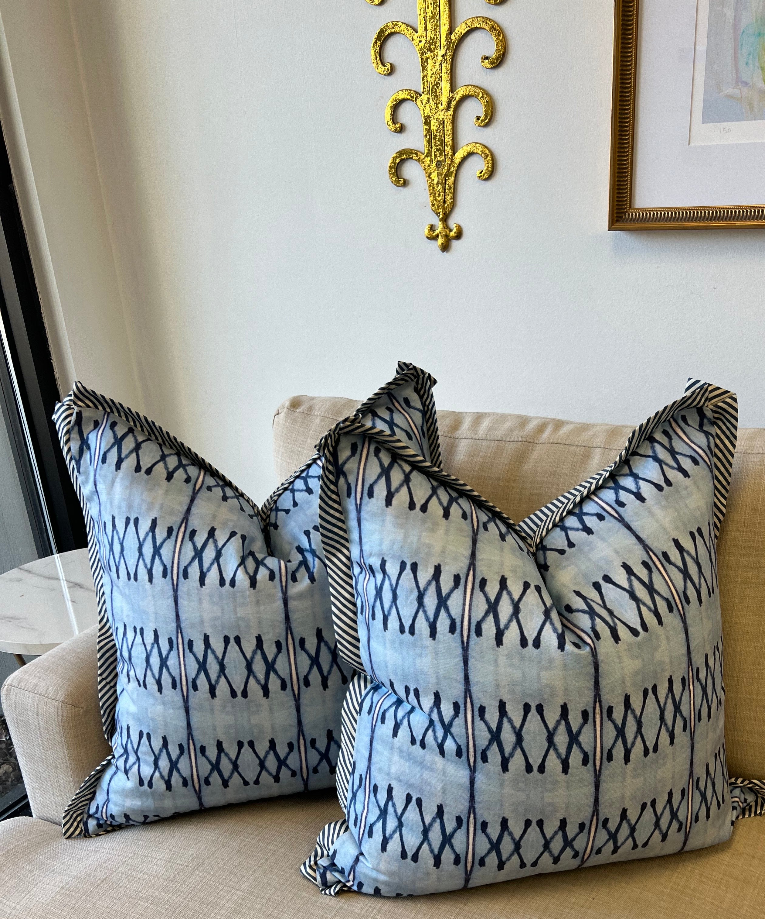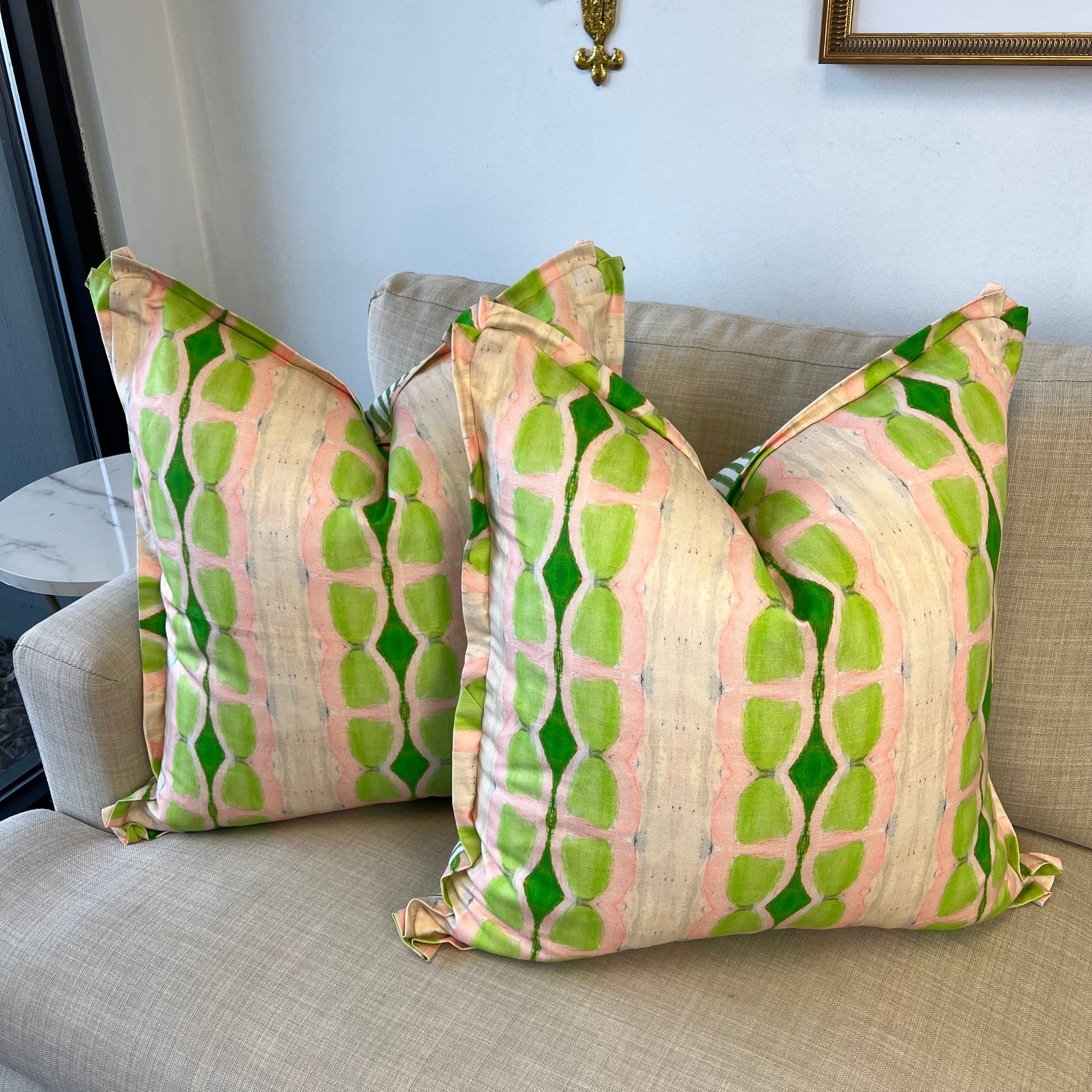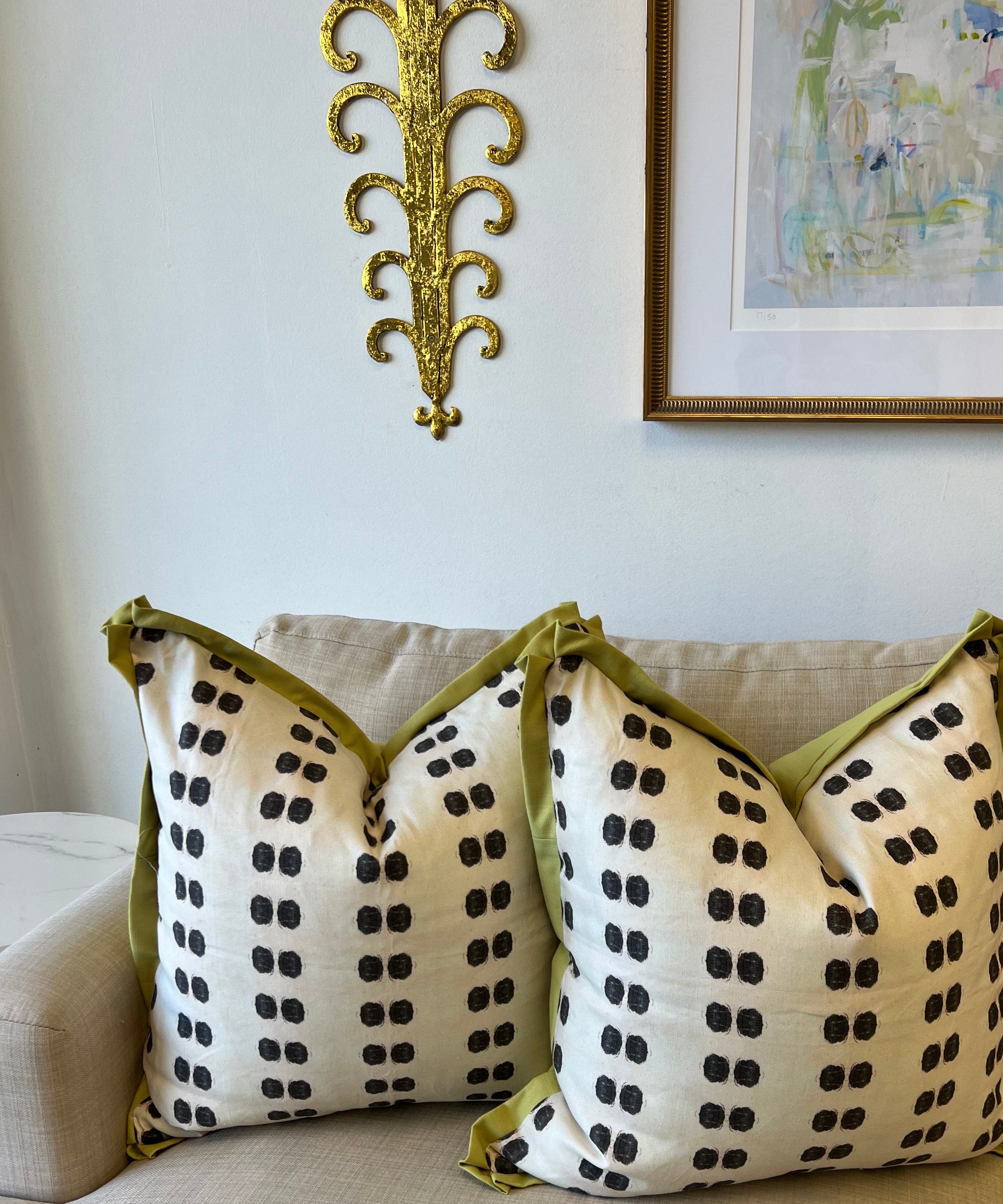 Cathy is inspired by modernism, loves layering and says that her best paintings emerge with mistakes beneath, peeking out from under the surface. She currently lives in Chicago, IL and we are so glad to partner with her In creating some fun fabric combos on pillows.