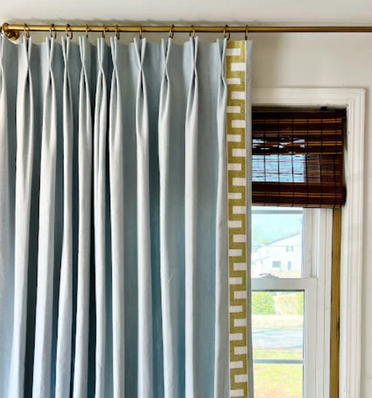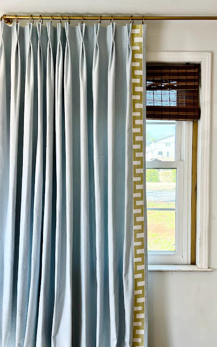 Pale Blue Cotton with Matrix Tape in Leaf Drapery Panel (Stain & Soil Repellant)