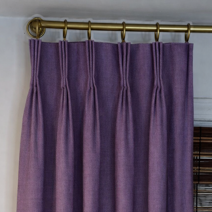 Drapes are finished with 4" header with buckram, 5 pleats and a 3.5" return and overlap. Each single width panel needs 7 rings and comes with pins set behind the pleat. (Adjusting the pin up or down can help lower or raise the panel a bit for slight adjustments as needed upon hanging). We always suggest waiting to hang drapery rods until the drapes are on hand, as it's easier to get the right placement/height when hanging the rod and drapery together.