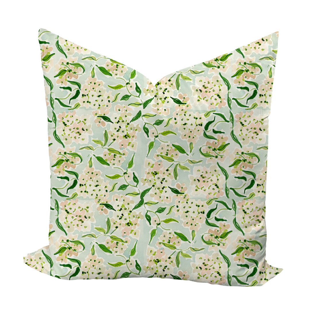 One decorative pillow cover featuring fabric by artist Evelyn Henson.