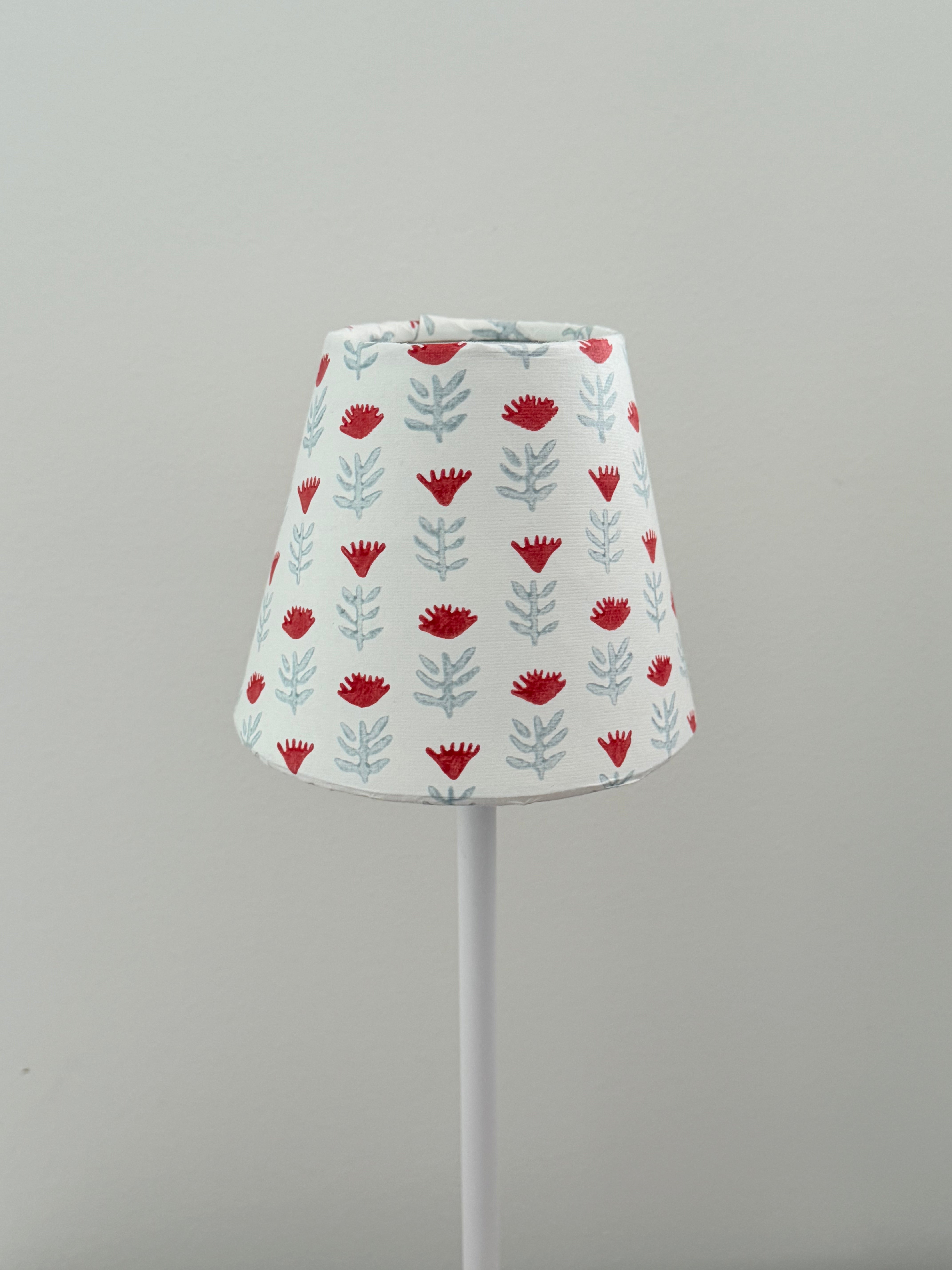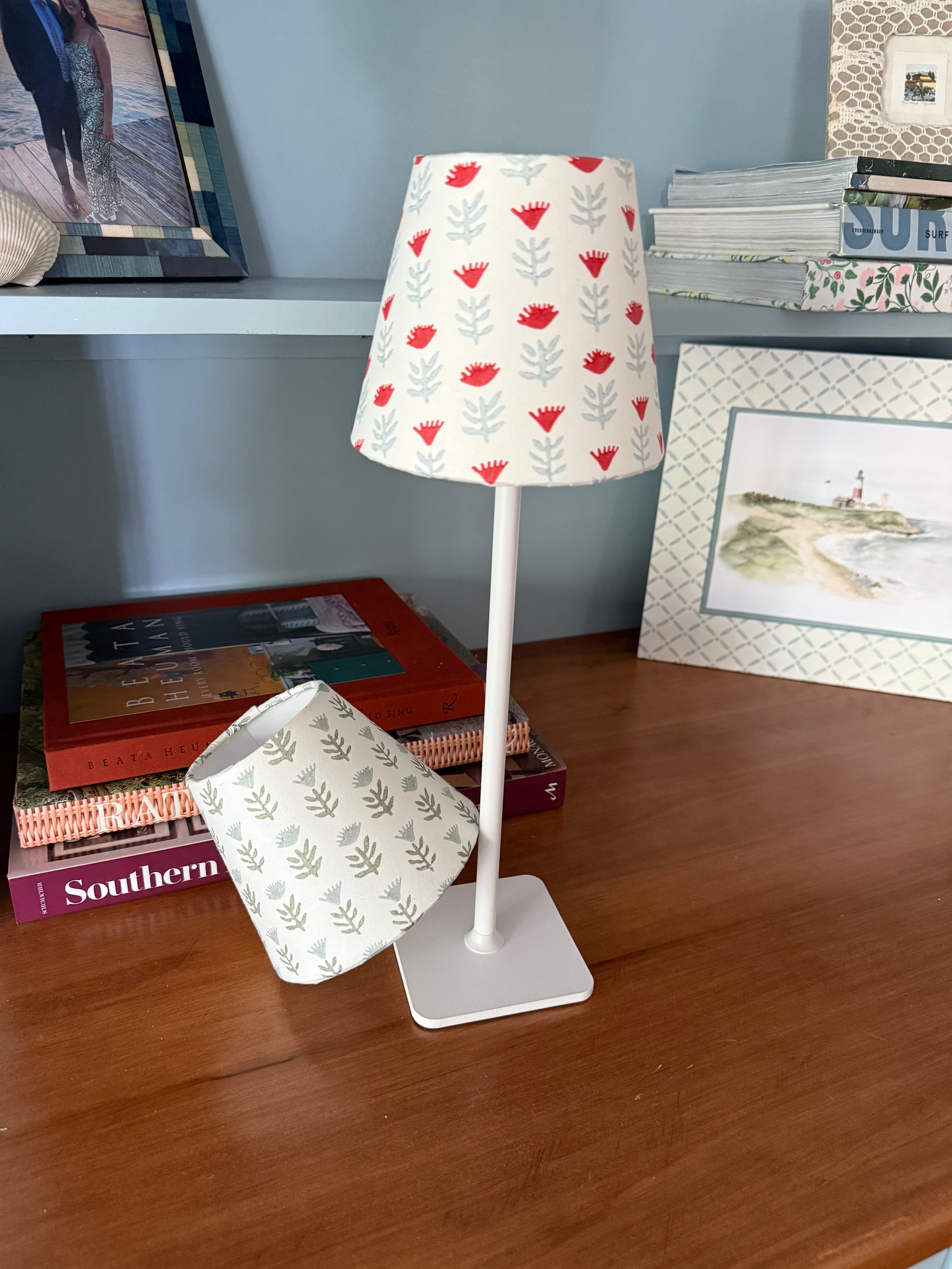 Our block printed cordless shades are the perfect accessory to elevate your LED lamp. Cordless lamp shade fits Poldina Pro and similar. Made out of recycled cotton paper that is hand block printed in India. Assembled by hand in the US. Available in two colorways, Poppy and Serene.