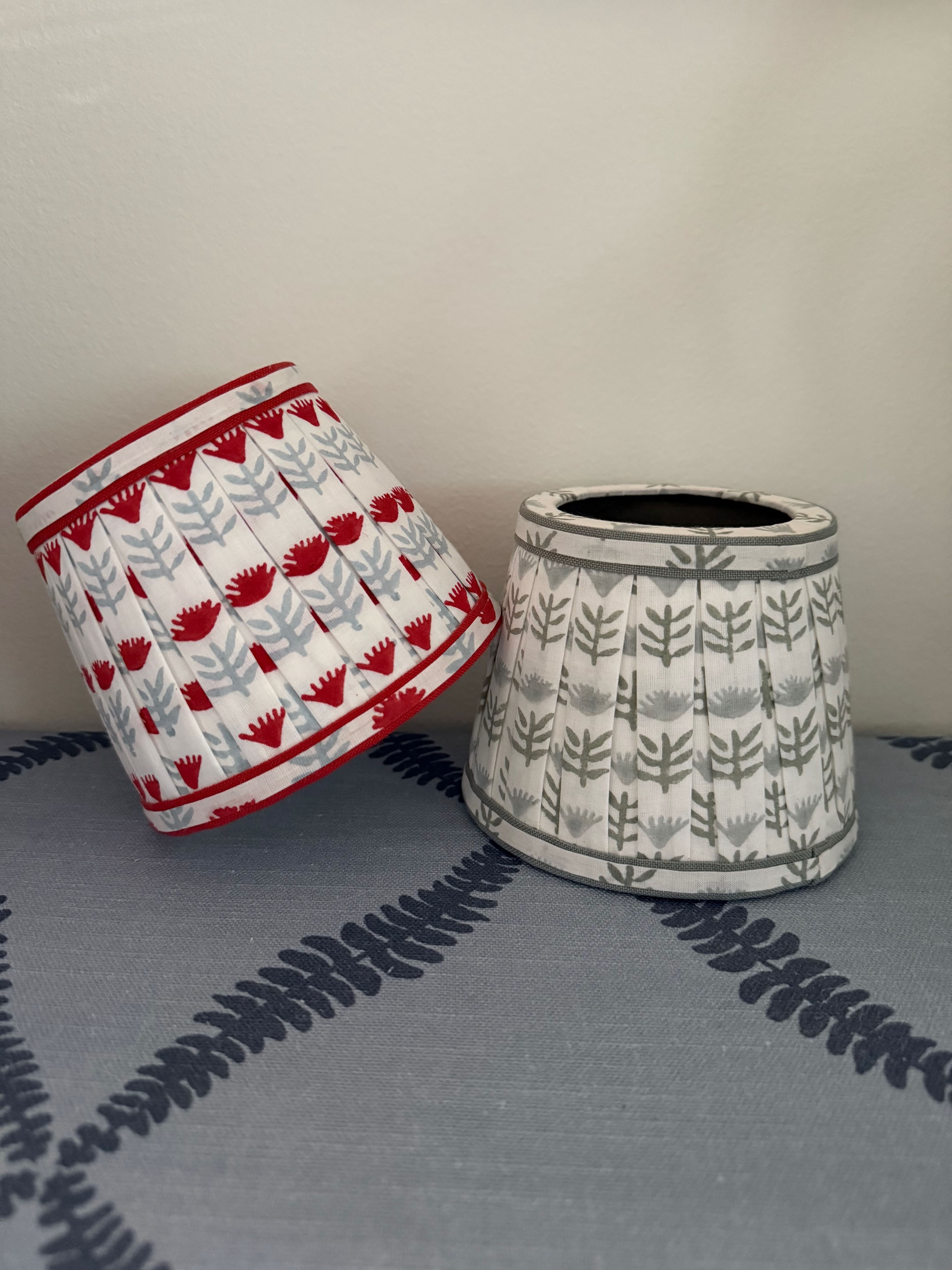 Pleated Block Print Lampshade for Cordless Lamp - Claire Serene