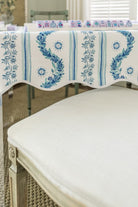 Scalloped Square Table Topper | Boxwood Garden - Delft Blue