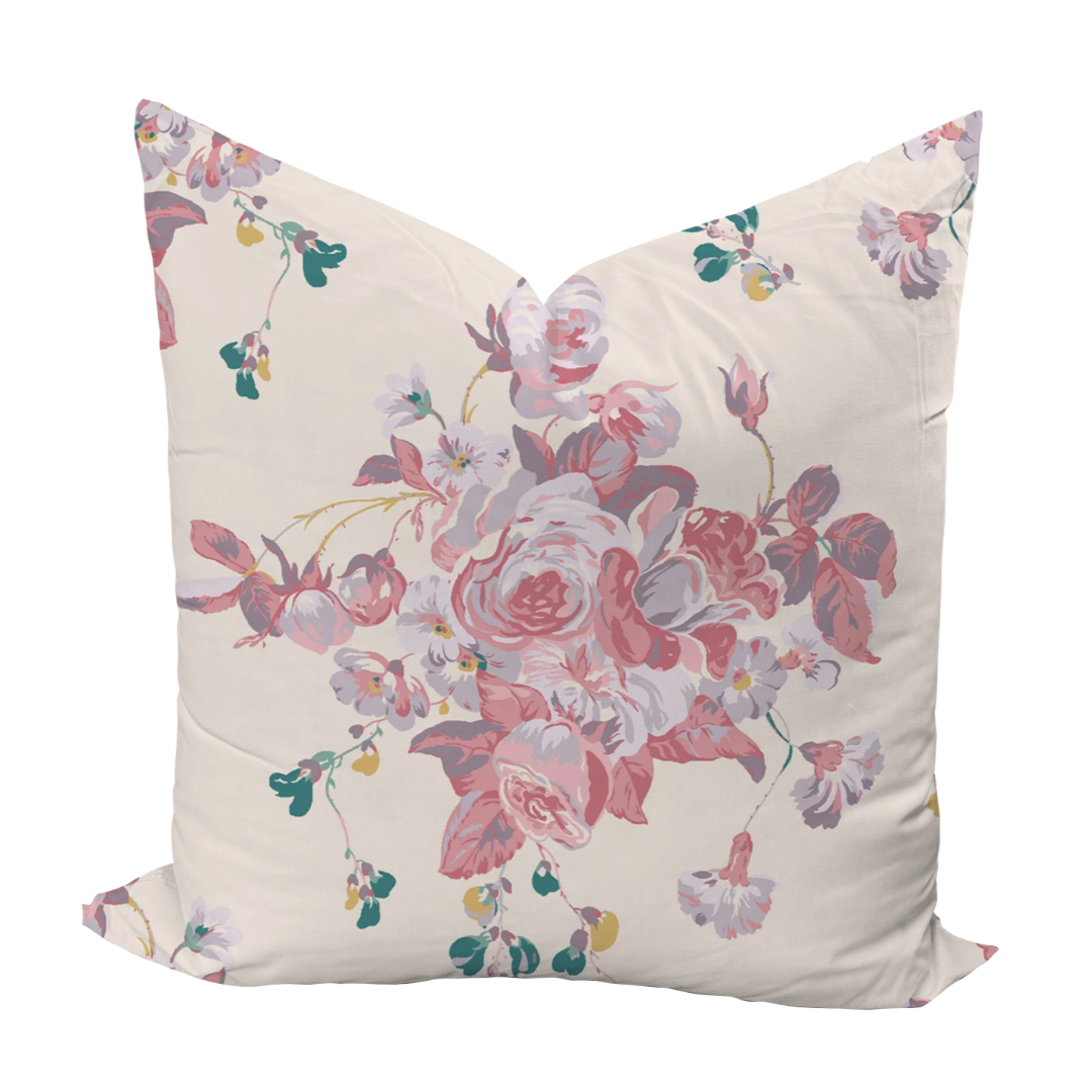 One decorative pillow cover featuring a floral/botanical like design on home decor weight fabric by Sister Parish.