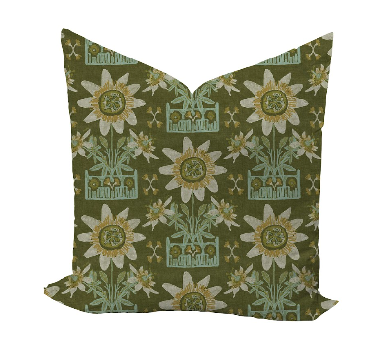 One decorative pillow cover featuring a hand painted design on home decor weight fabric by artist Lulie Wallace.