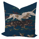 One decorative pillow cover featuring a hunting dog scene on home decor weight fabric by Schumacher.