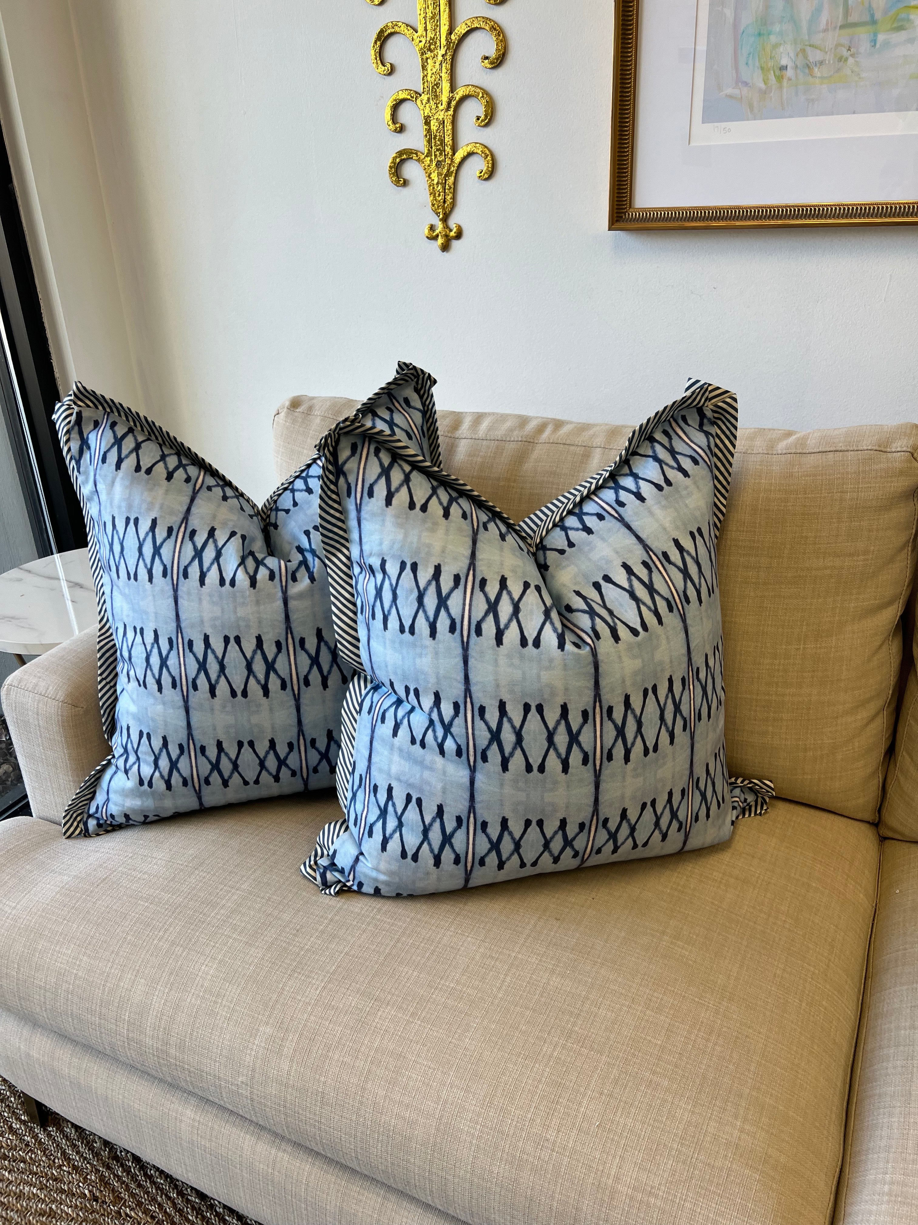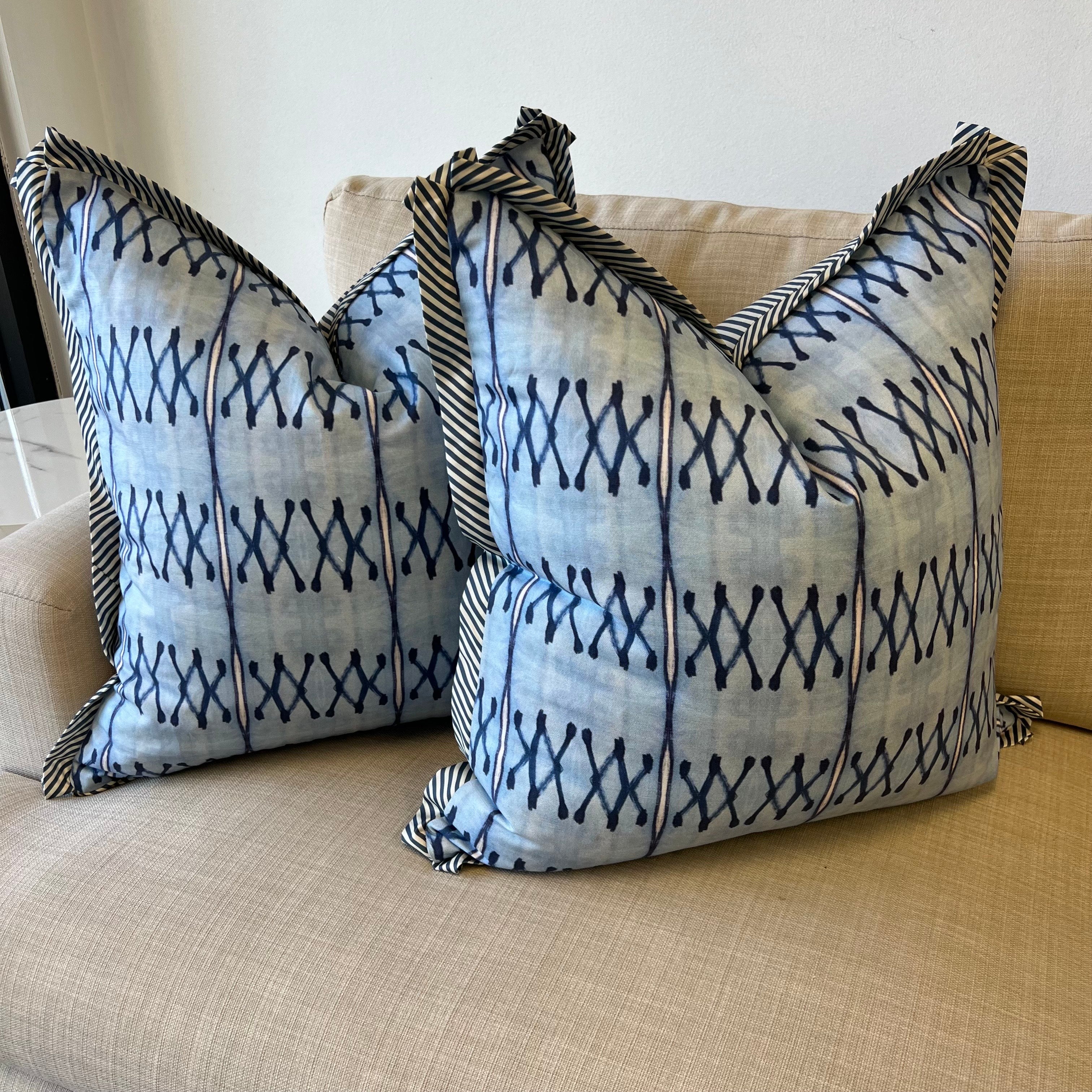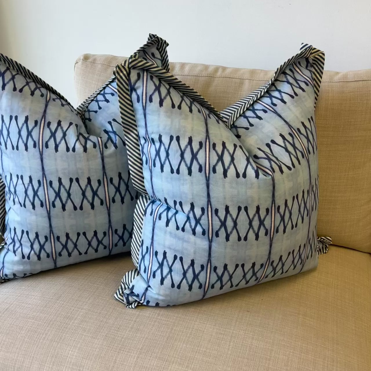 Placement of the pattern may vary from front to back & from pillow. Cover will feature Blaire by Cathy Lancaster on the front with Little Carlisle in Admiral as the back and contrast fabric (if you select contrast welt or flange).